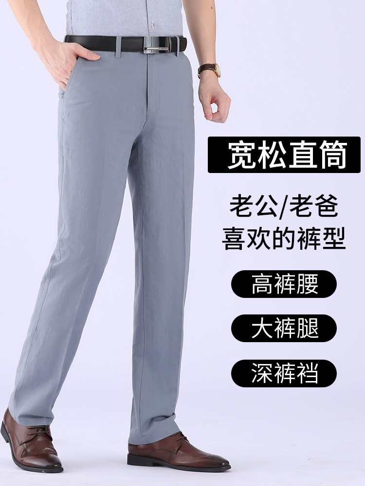 Тонкие летние штаны, для среднего возраста, свободный прямой крой, из хлопка и льна