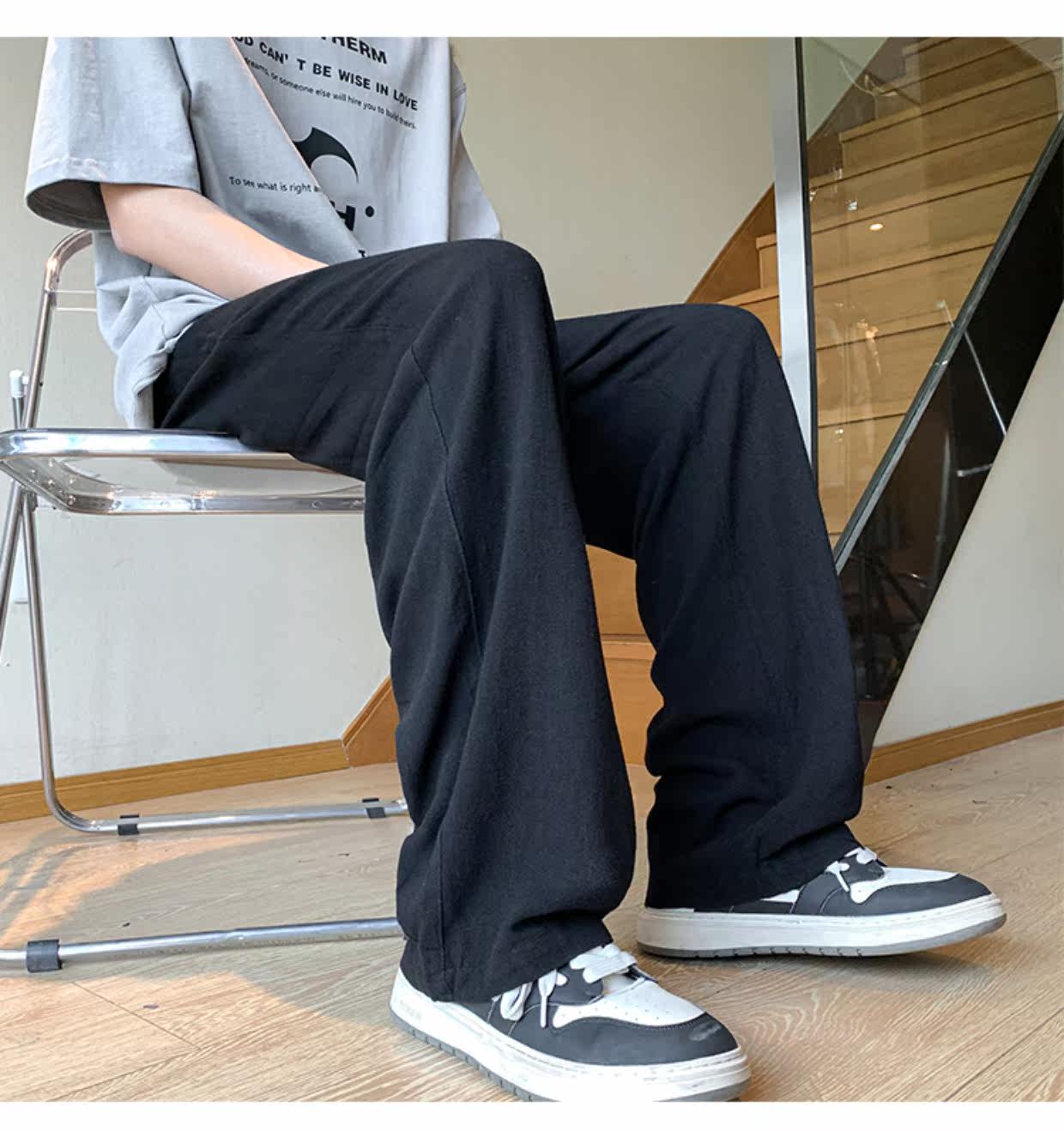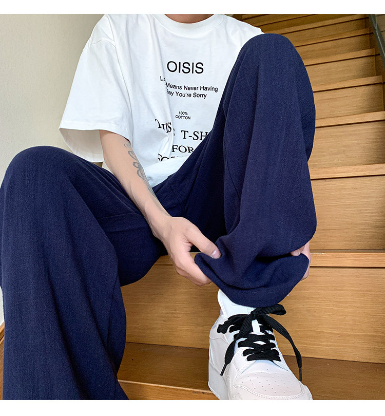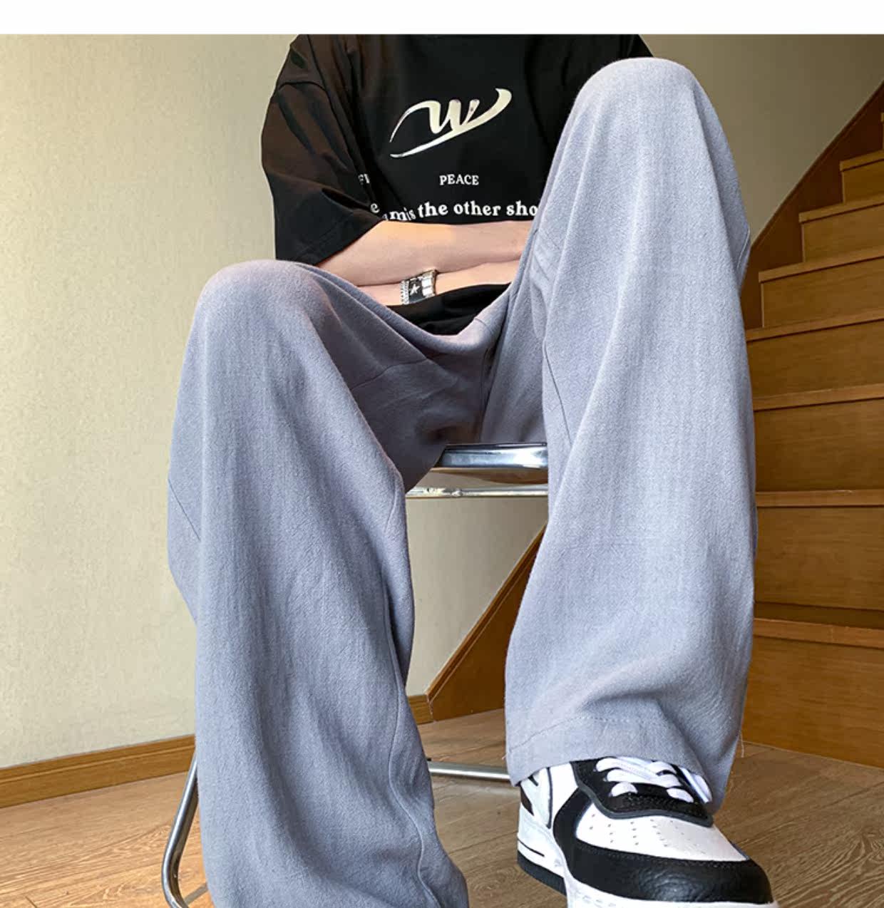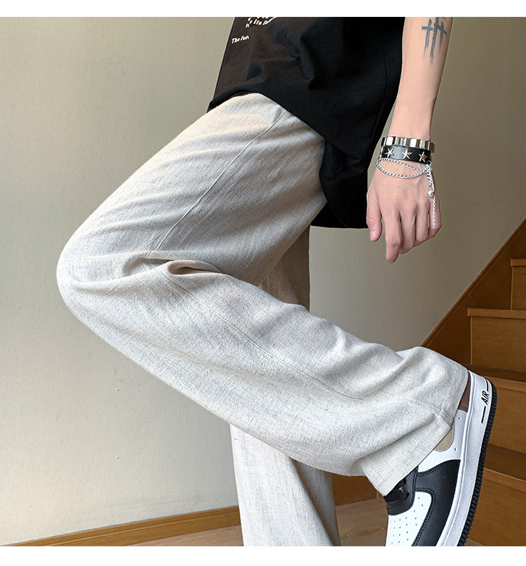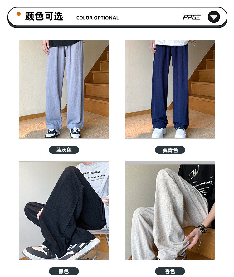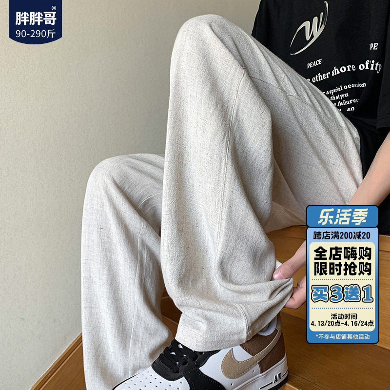 胖胖哥 Мужские летние тонкие дышащие шелковые штаны, большой размер, из хлопка и льна, свободный прямой крой