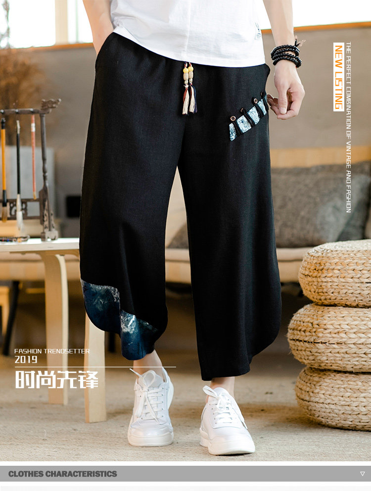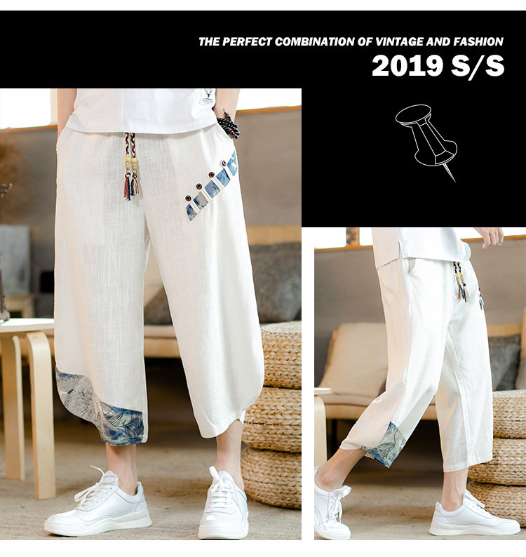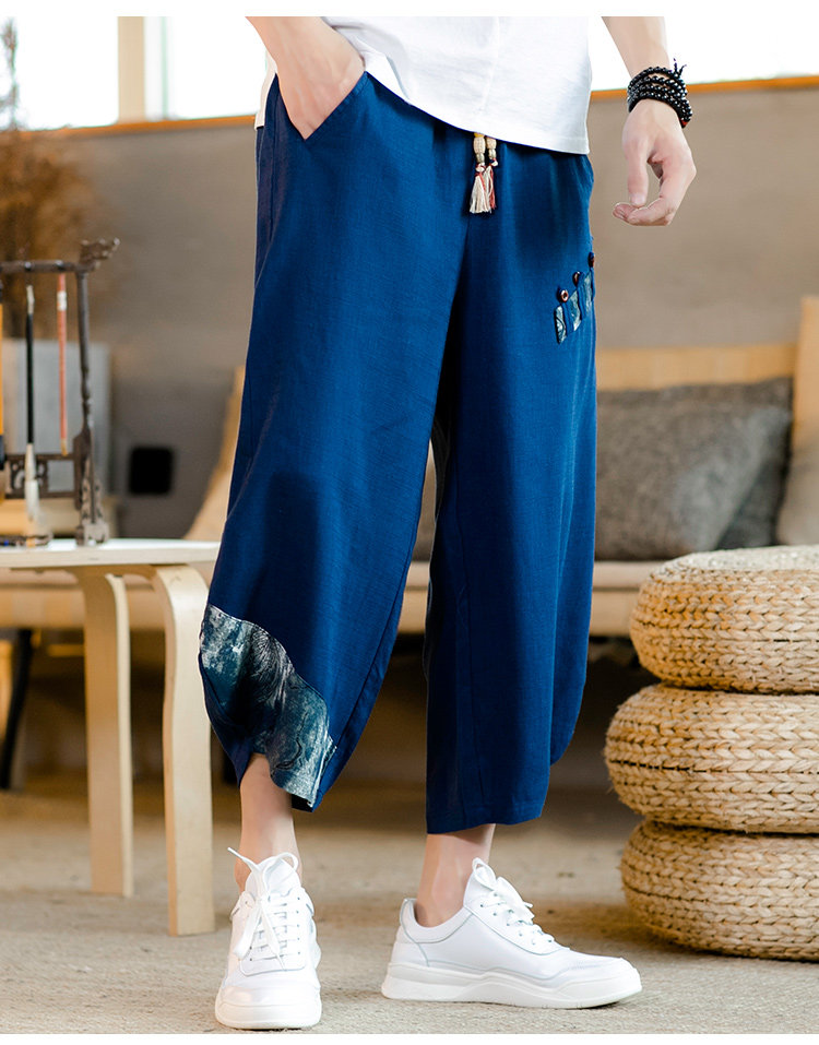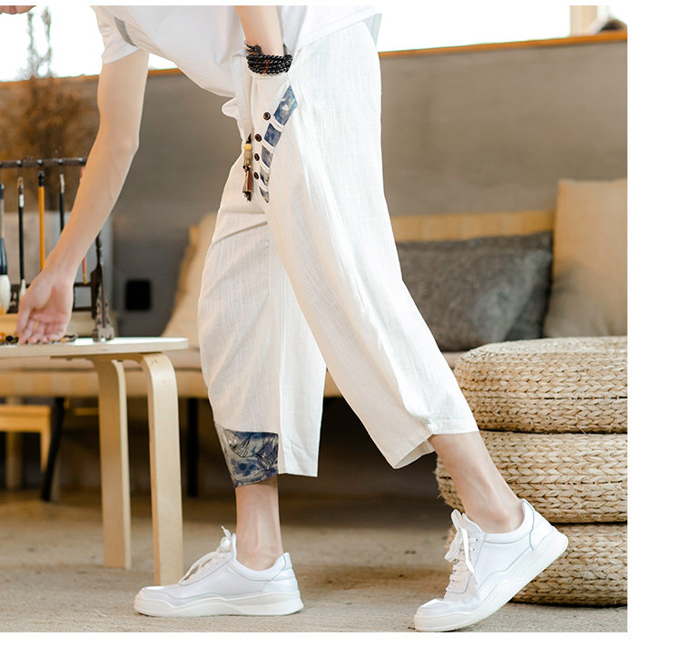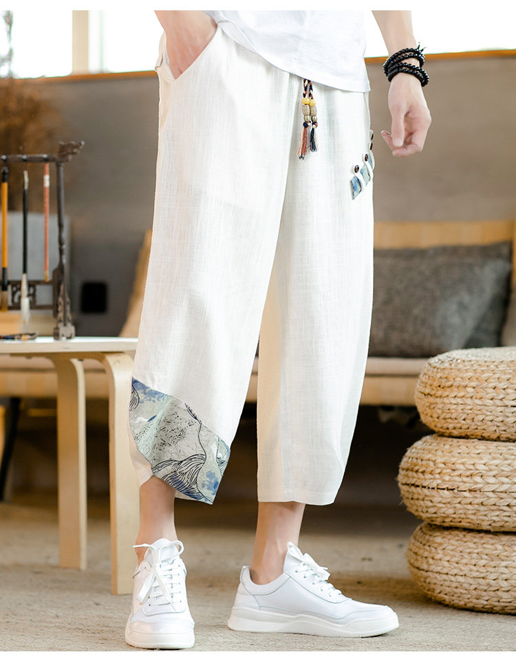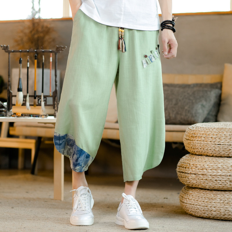 Летние штаны для мальчиков, пляжные шорты, из хлопка и льна, китайский стиль, свободный крой