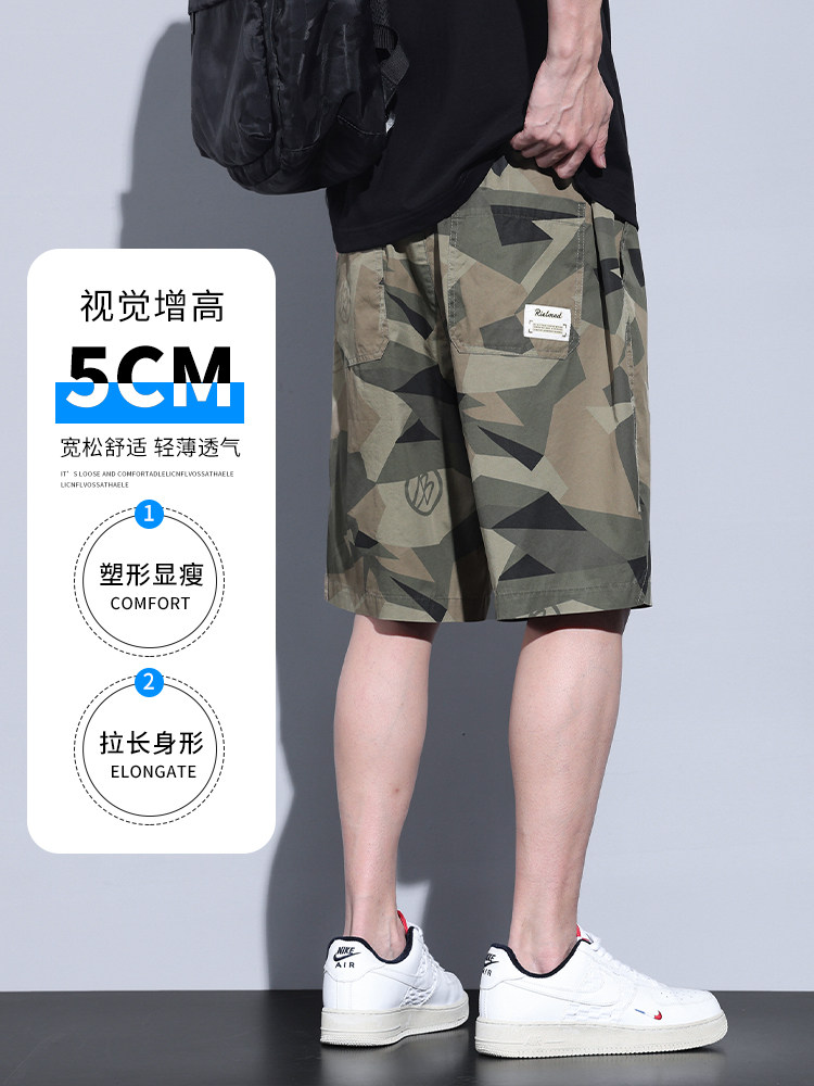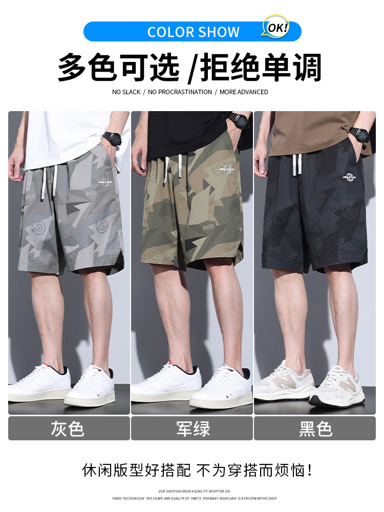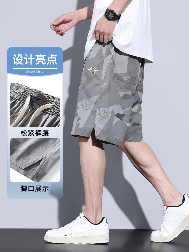 Летние шелковые спортивные трендовые тонкие шорты, дышащие камуфляжные штаны для отдыха, оверсайз