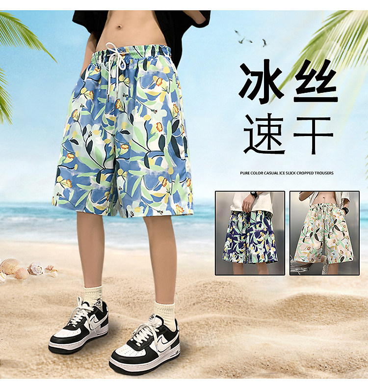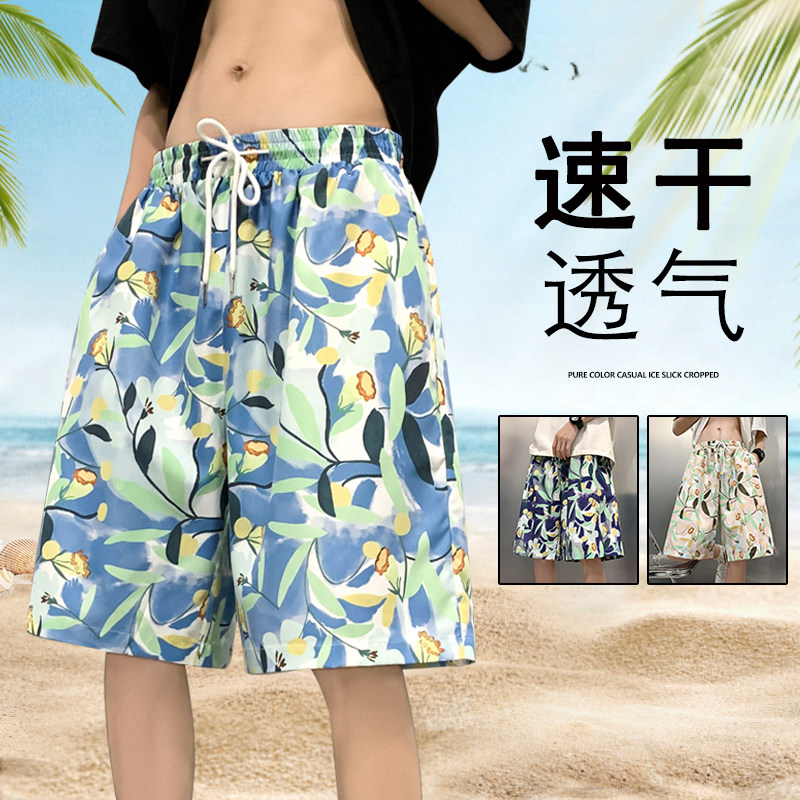 Трендовые пляжные летние тонкие шелковые быстросохнущие штаны, шорты, свободный крой