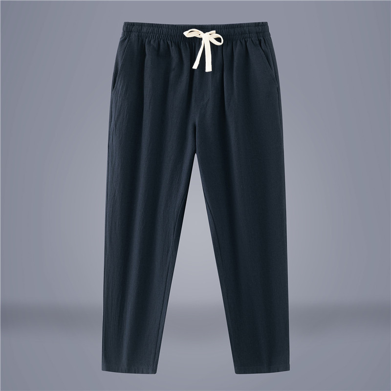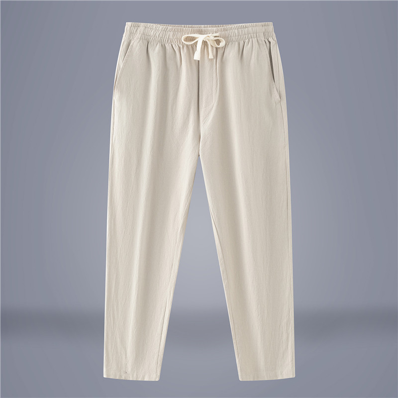 Мужские хлопковые летние тонкие штаны для отдыха, 100% хлопок, из хлопка и льна, свободный прямой крой, средняя посадка, коллекция 2023, китайский стиль