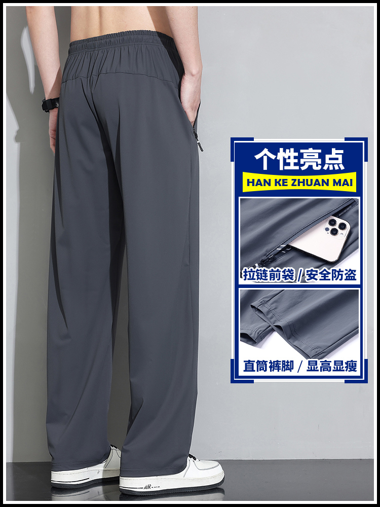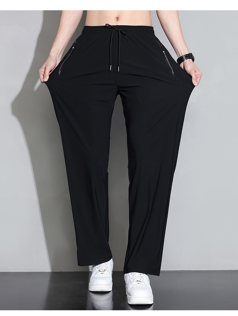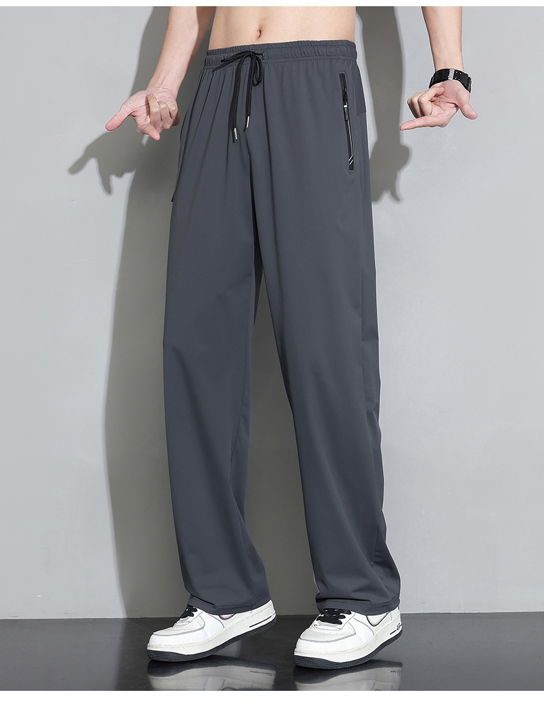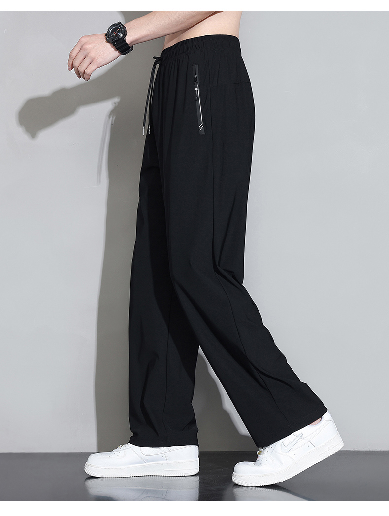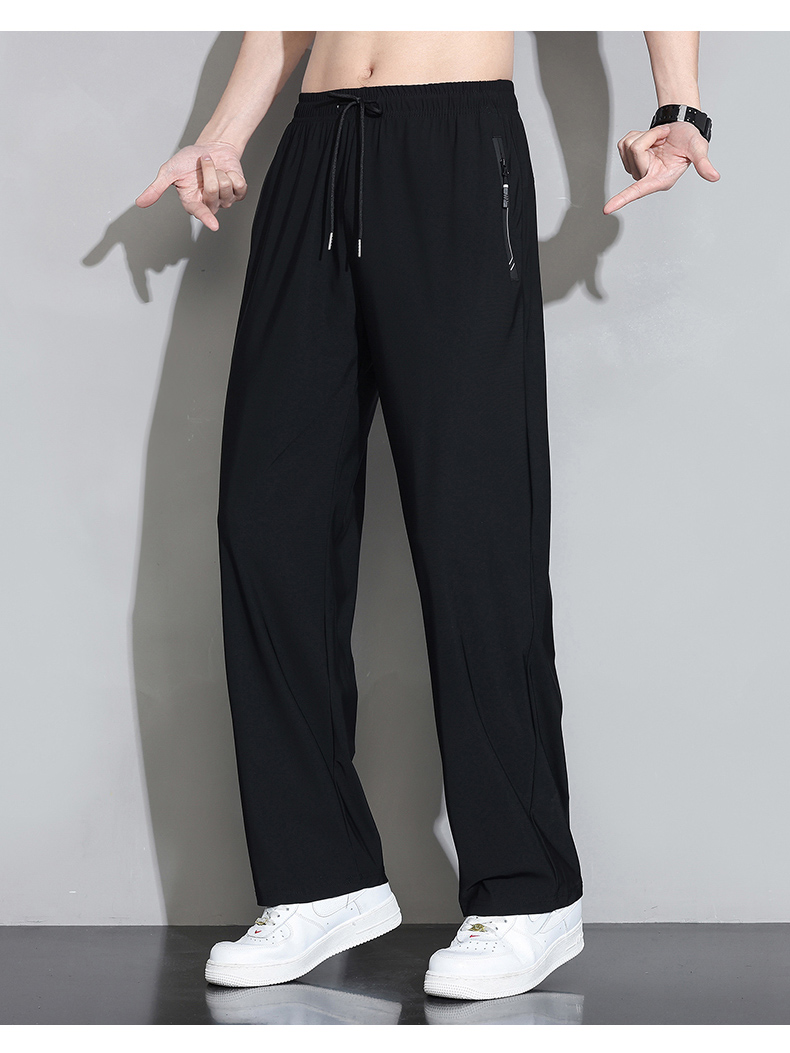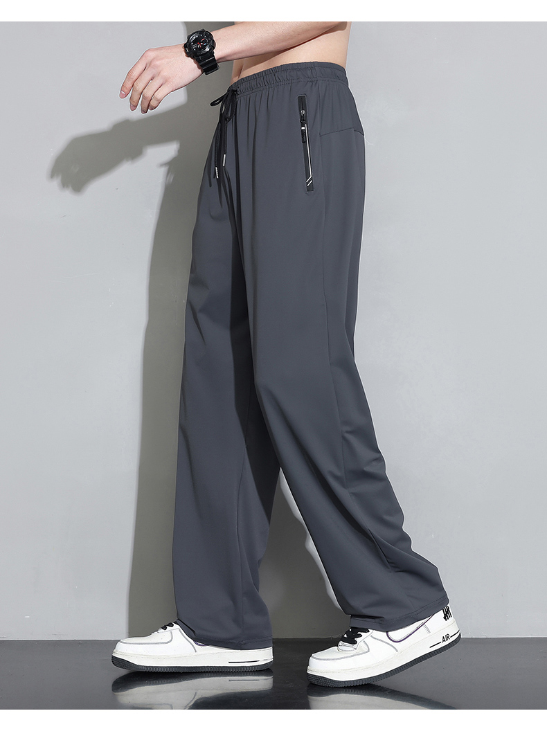 Мужские шелковые летние штаны, спортивные тонкие быстросохнущие повседневные брюки для отдыха с молнией, свободный прямой крой