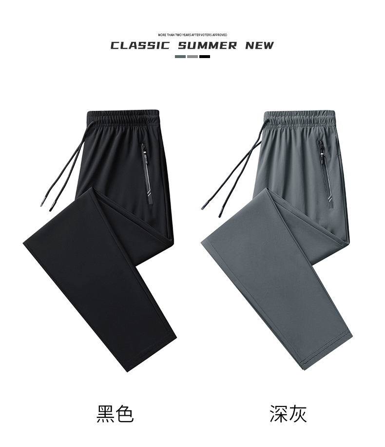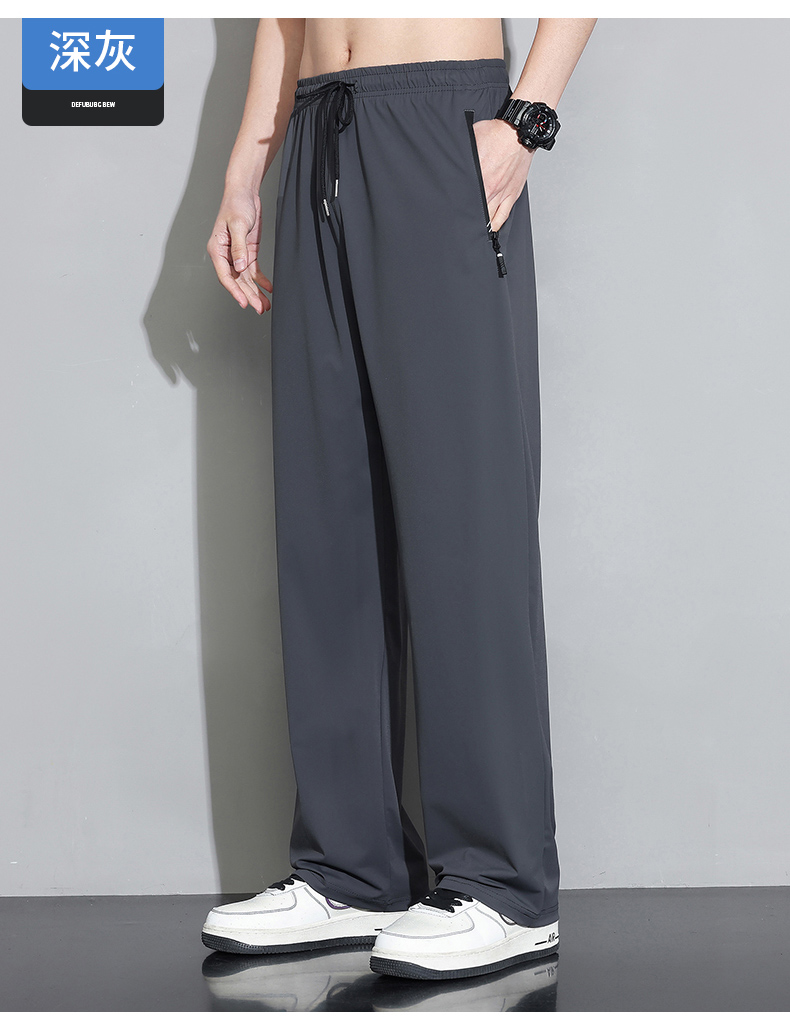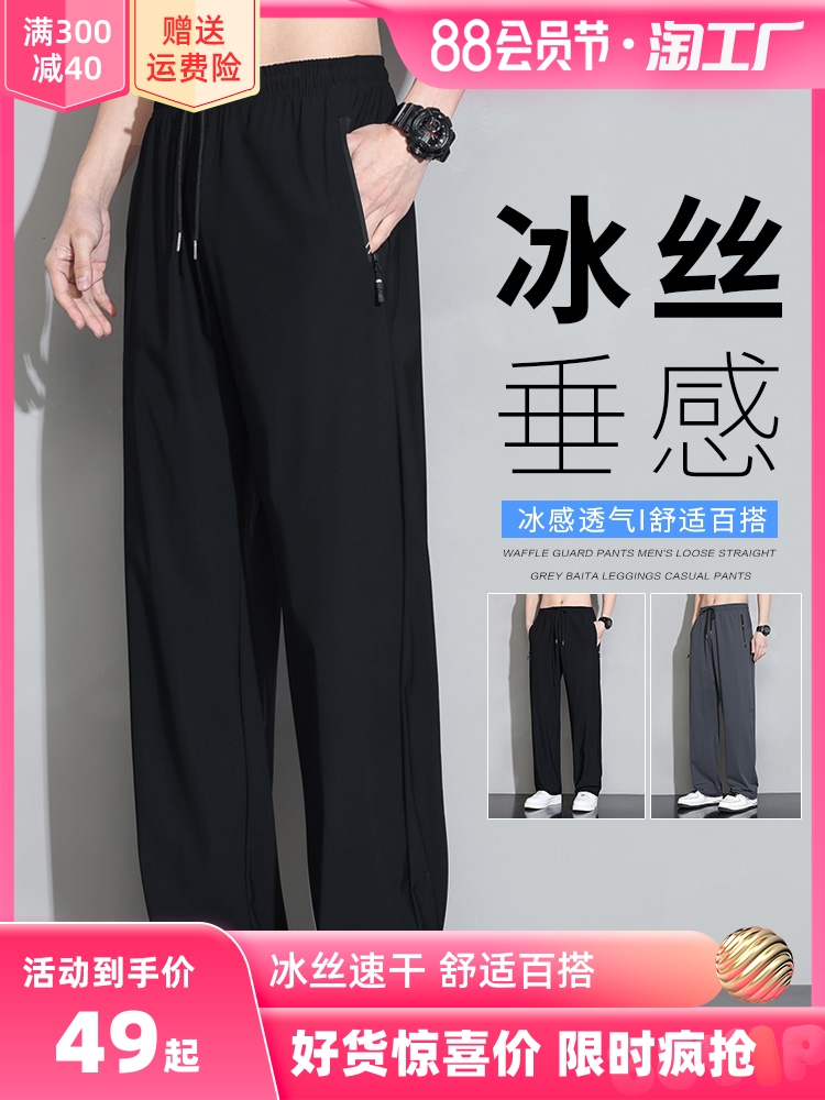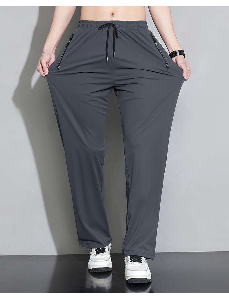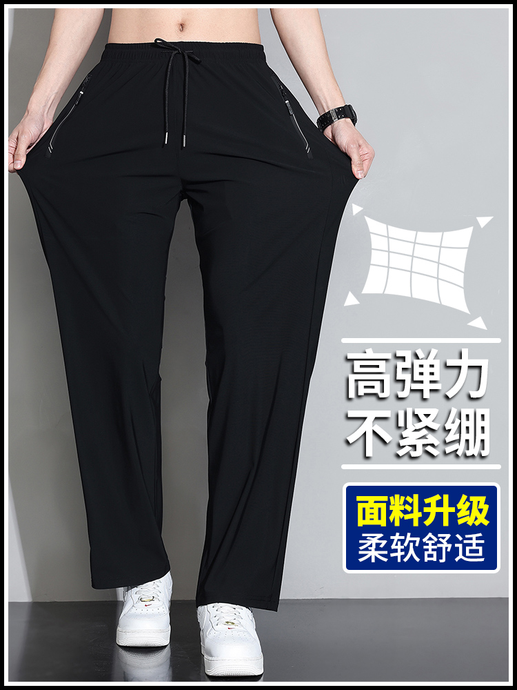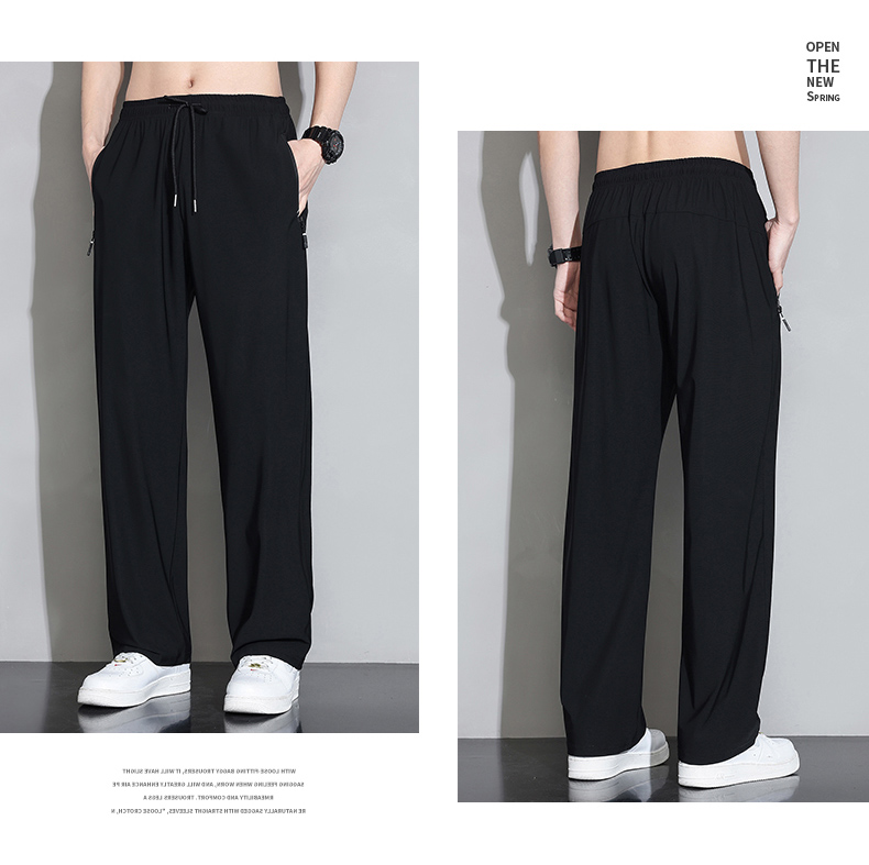 Мужские шелковые летние штаны, спортивные тонкие быстросохнущие повседневные брюки для отдыха с молнией, свободный прямой крой