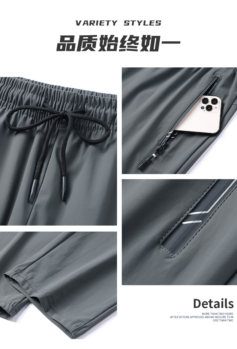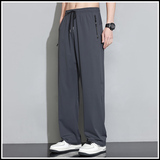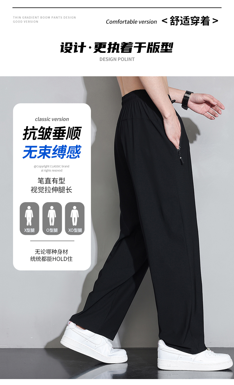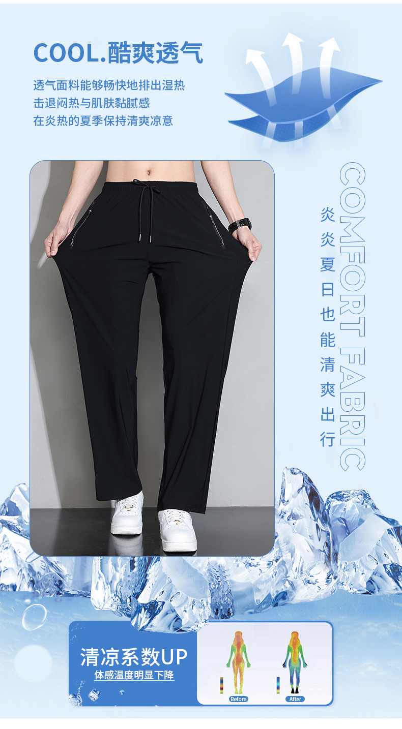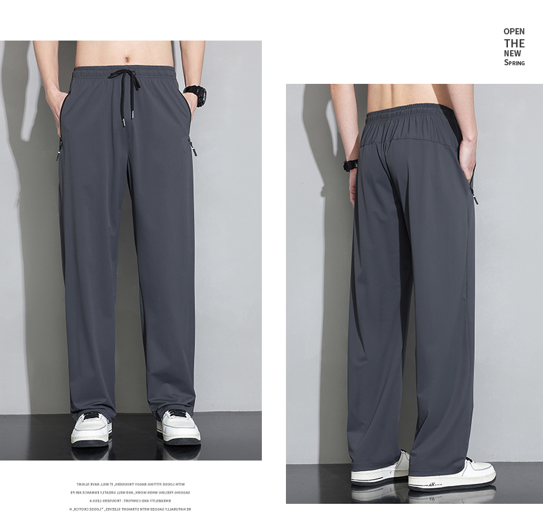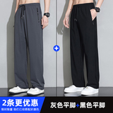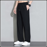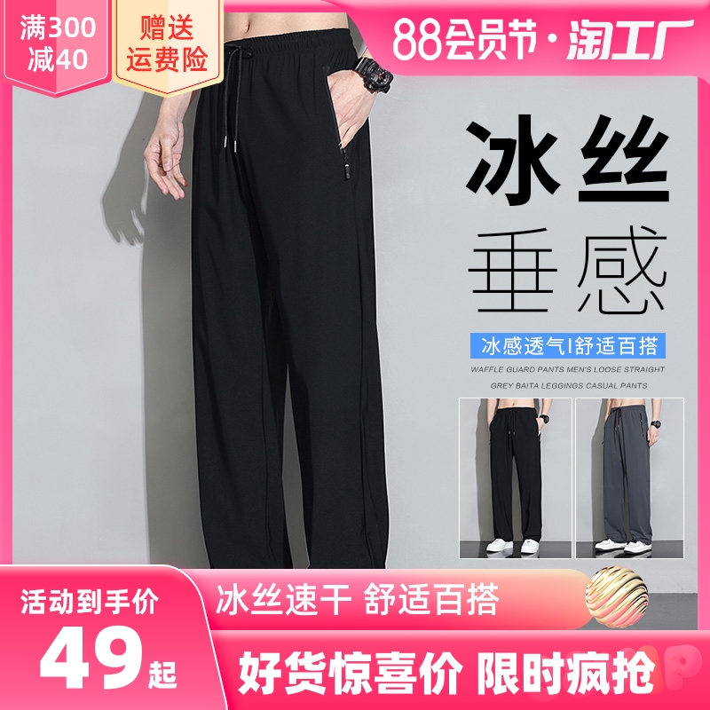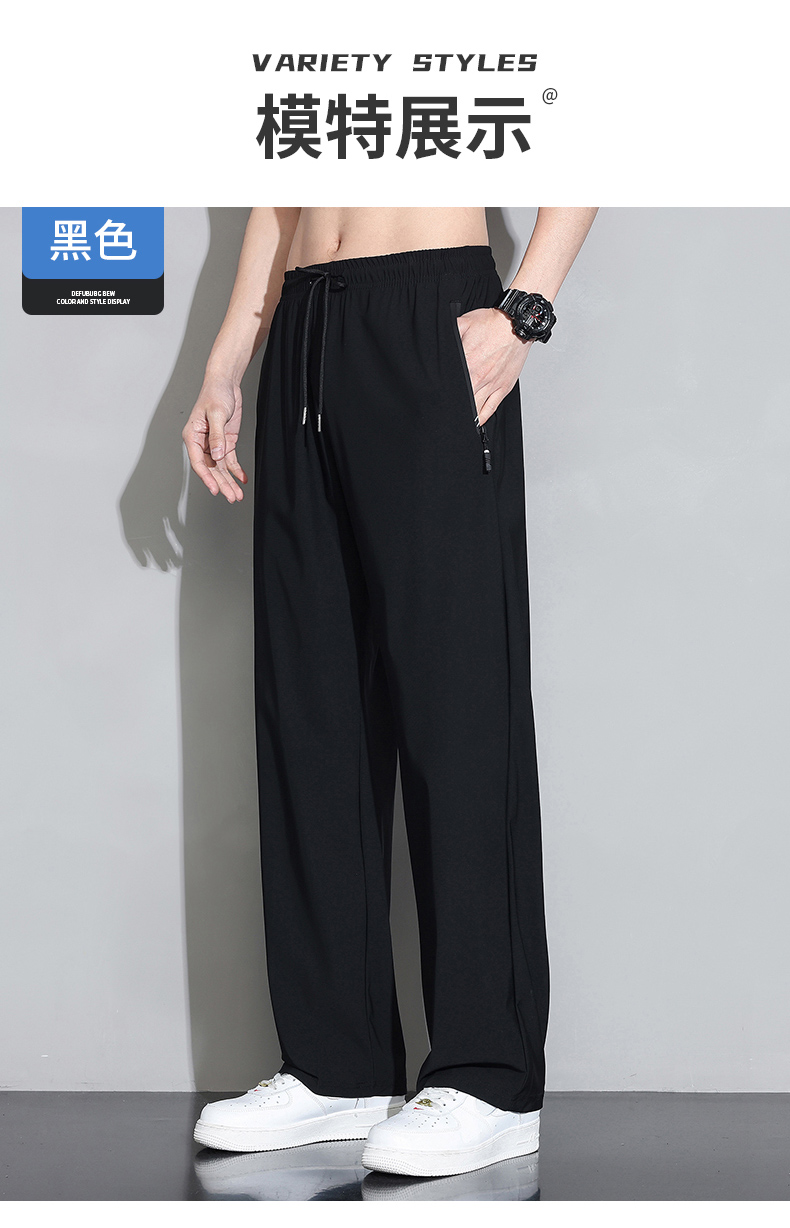 Мужские шелковые летние штаны, спортивные тонкие быстросохнущие повседневные брюки для отдыха с молнией, свободный прямой крой