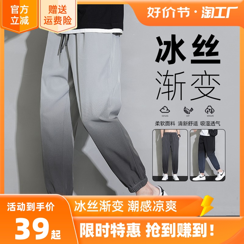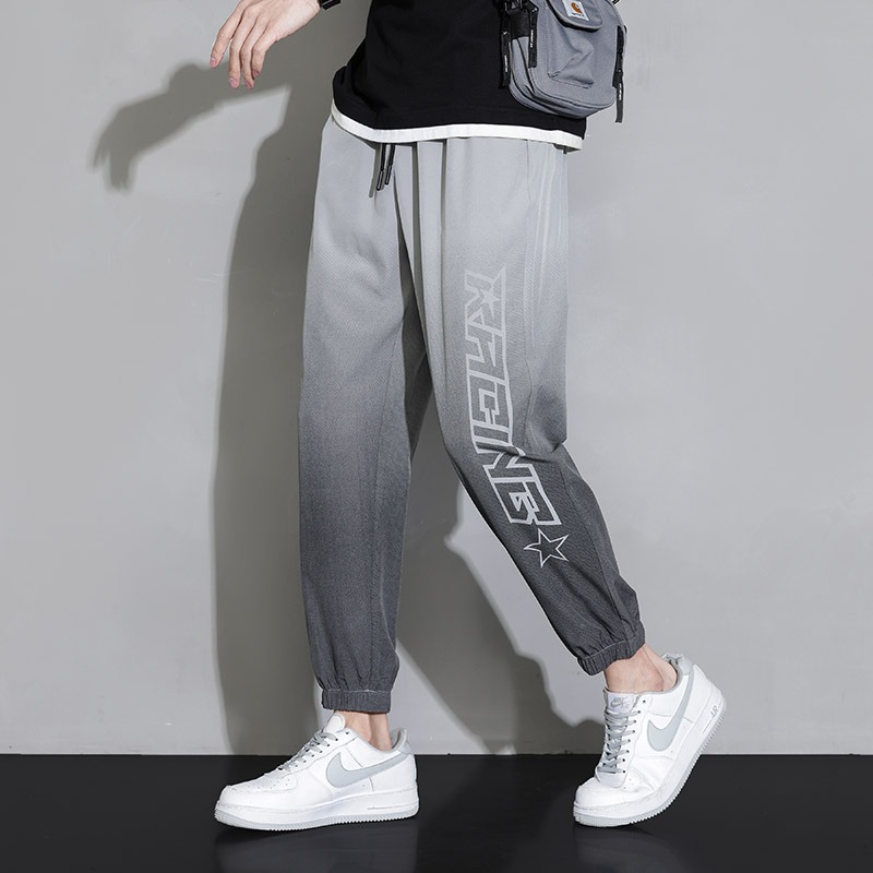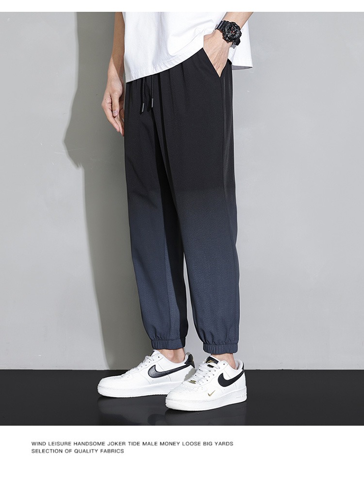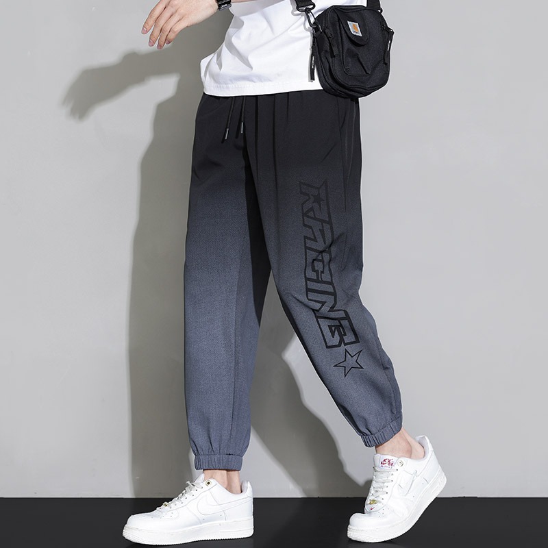 Мужские шелковые летние тонкие штаны, быстросохнущие спортивные повседневные брюки для отдыха, градиент, оверсайз