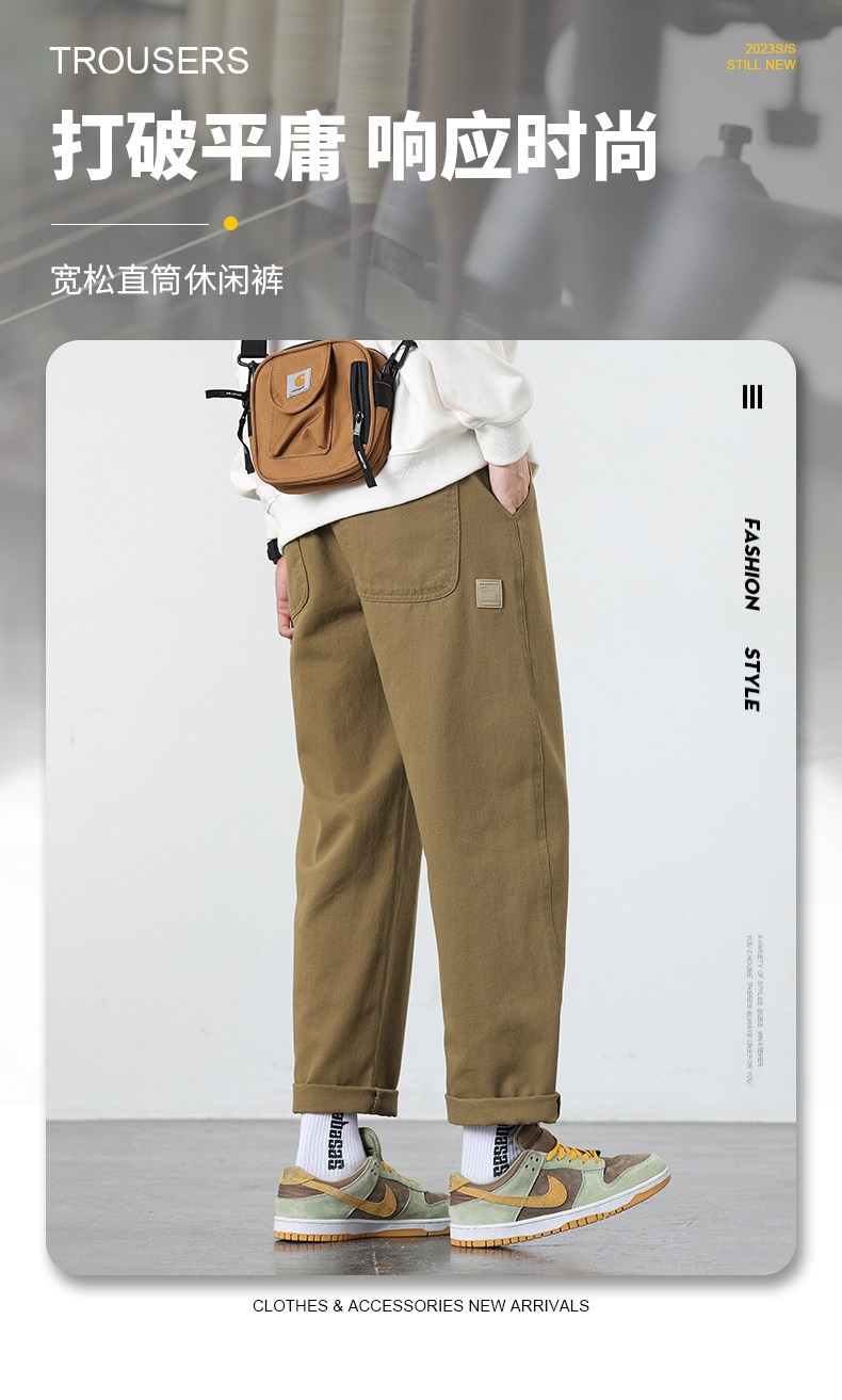 Мужские хлопковые весенние штаны для отдыха, в американском стиле, свободный прямой крой