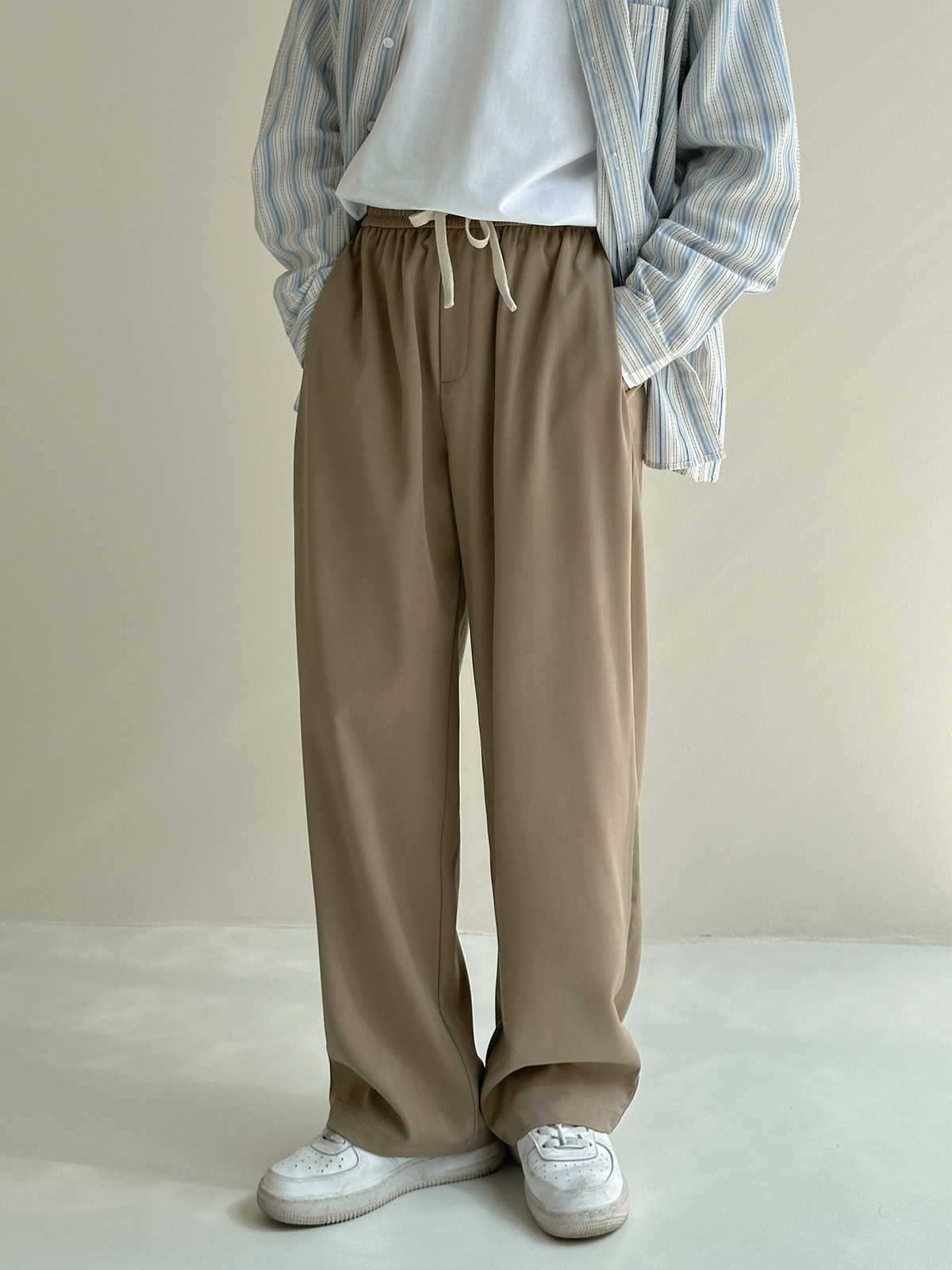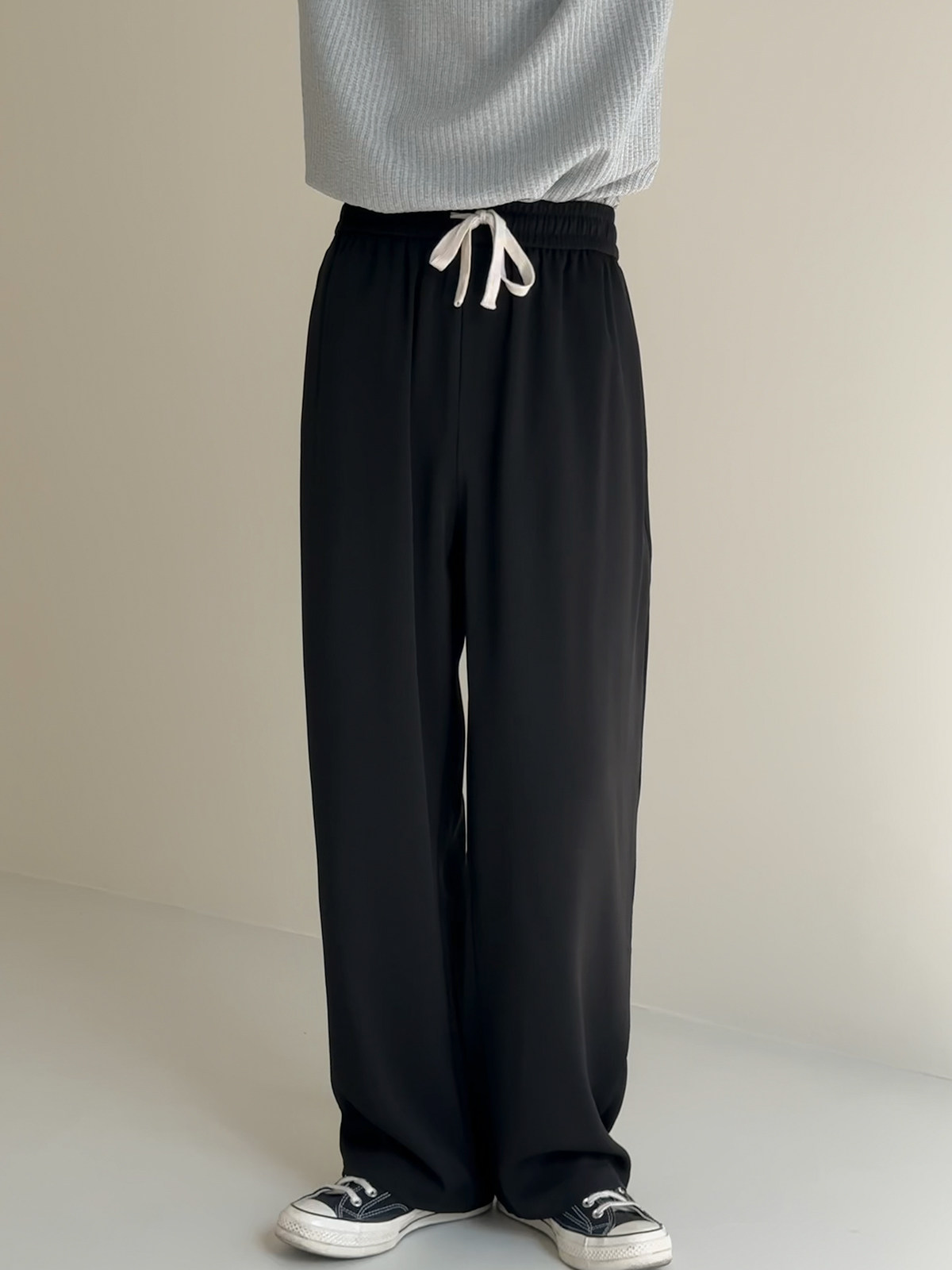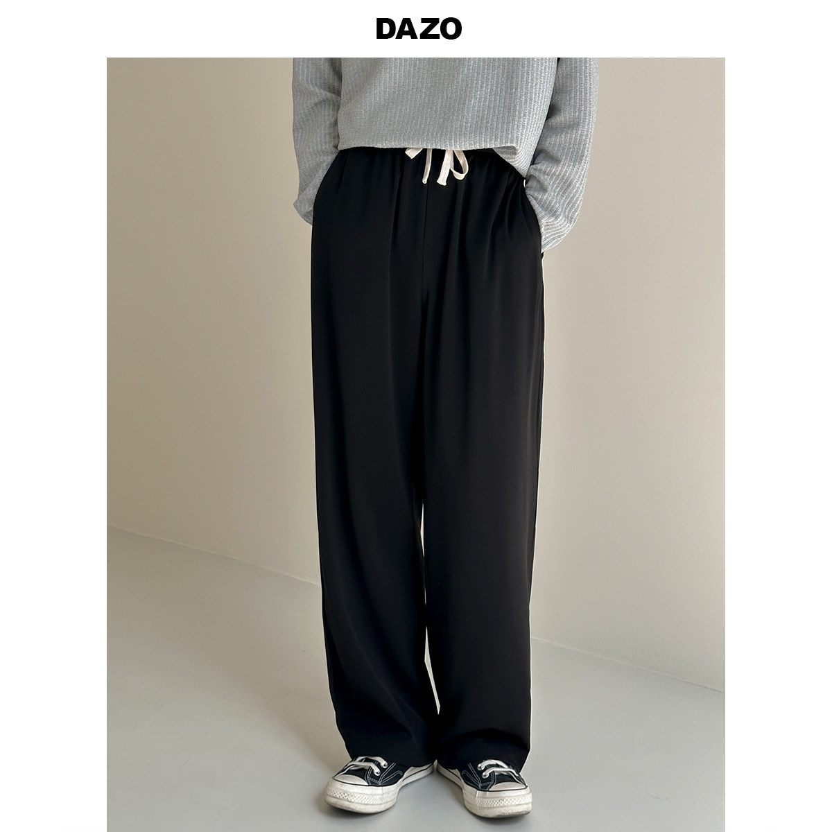 Осенние штаны, повседневные брюки, свободный прямой крой, на шнурках, по фигуре