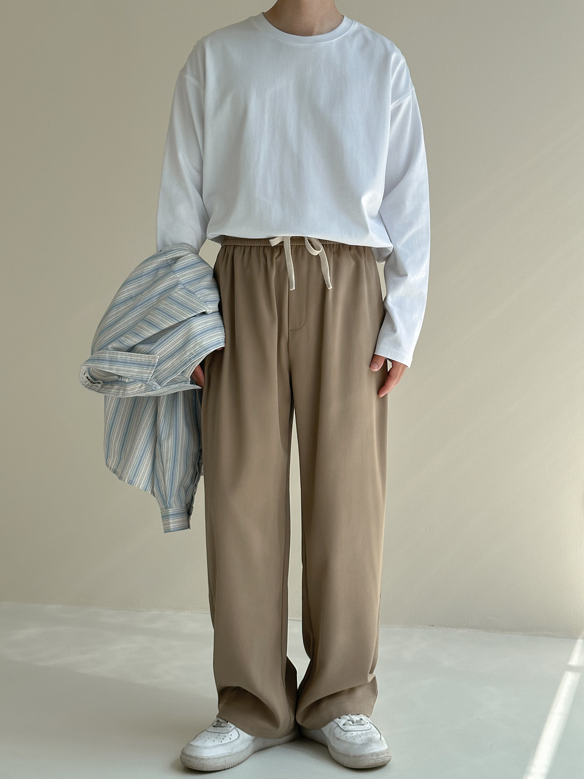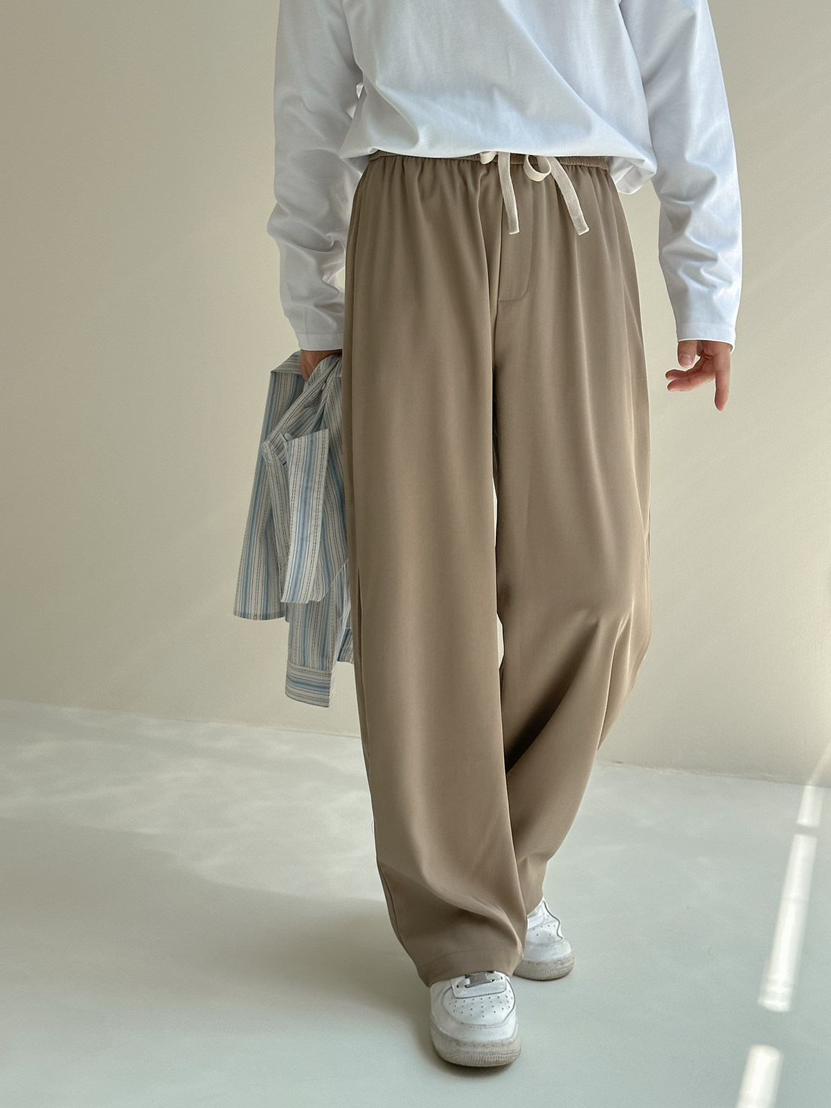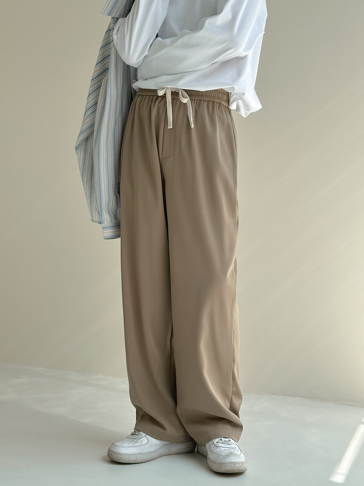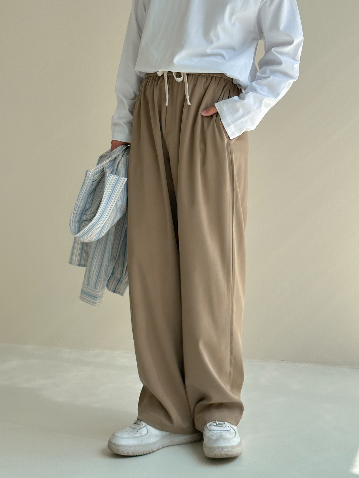 Осенние штаны, повседневные брюки, свободный прямой крой, на шнурках, по фигуре