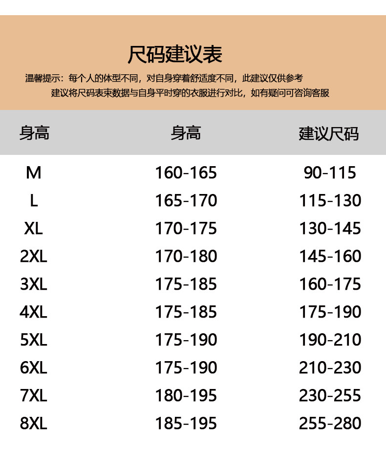 | Размер: | М рекомендуется весить 90-115 кот, L Рекомендуемый вес 115-130 Catties, XL рекомендует весить 130-145 кот, 2xl рекомендуется 145-160 кот, 3xl рекомендуется весить 160-175 кот, 4xl рекомендуется весом 175-190 кот, 5xl рекомендуется вес 190-210 кот, 6xl рекомендуется вес 210-230 кот, 7xl рекомендуется 230-255 Catties, 8xl рекомендуется весом 255-280 кот |