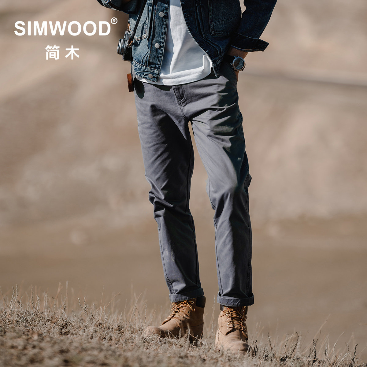 Simwood Простая деревянная мужская одежда [RS04 установила прямо] 320G углеродная шлифовальная шлифовальная вода для промывки ретро повседневные штаны