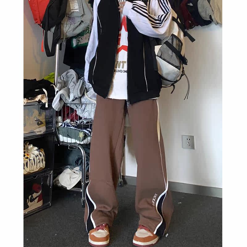 Ретро дизайнерские трендовые штаны подходит для мужчин и женщин для отдыха, в американском стиле, тренд сезона, свободный прямой крой