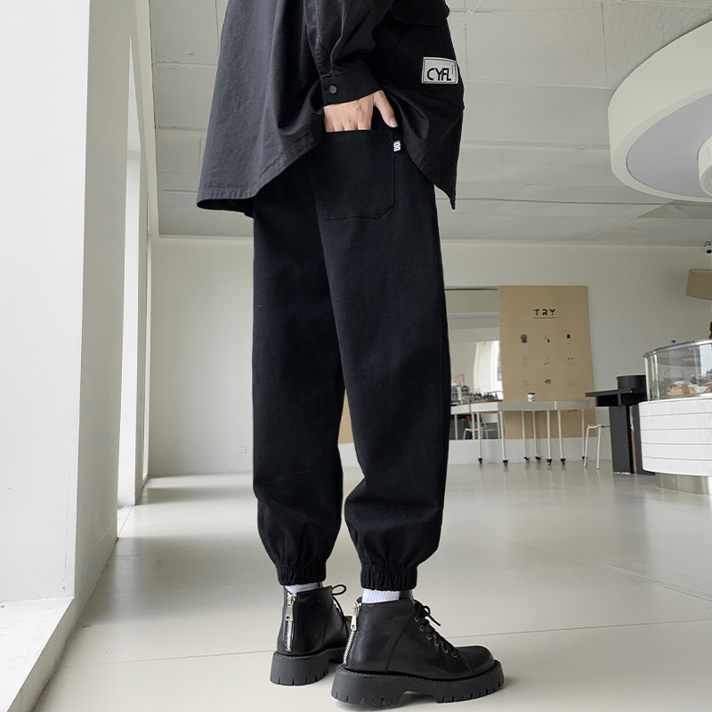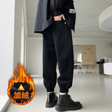 Осенние штаны, черные повседневные брюки, оверсайз