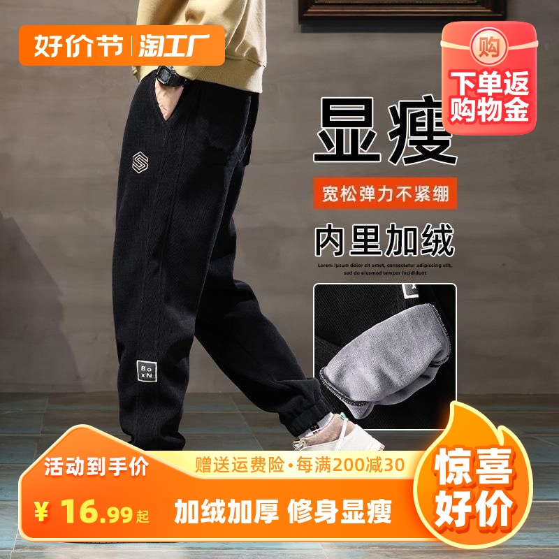 Мужские демисезонные трендовые вельветовые утепленные штаны для отдыха, оверсайз
