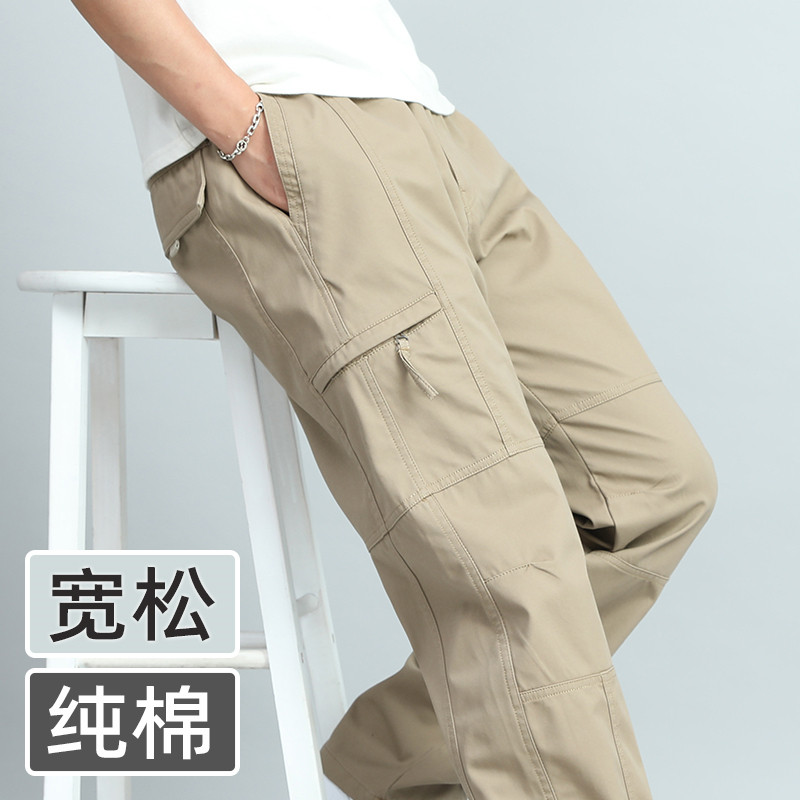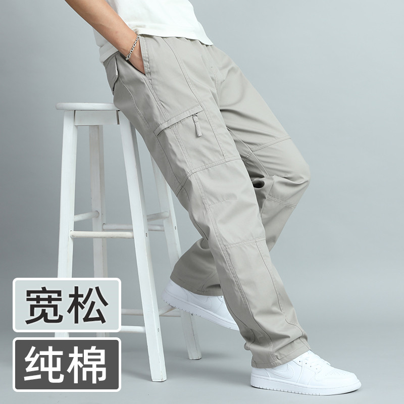 Мужские летние тонкие хлопковые спортивные штаны, оверсайз, большой размер, свободный прямой крой