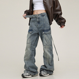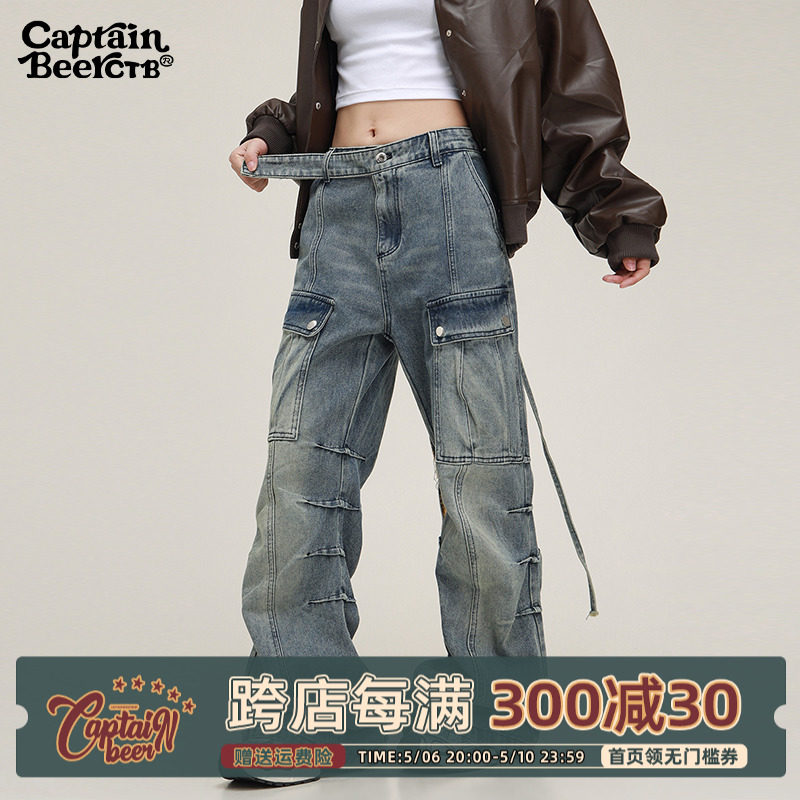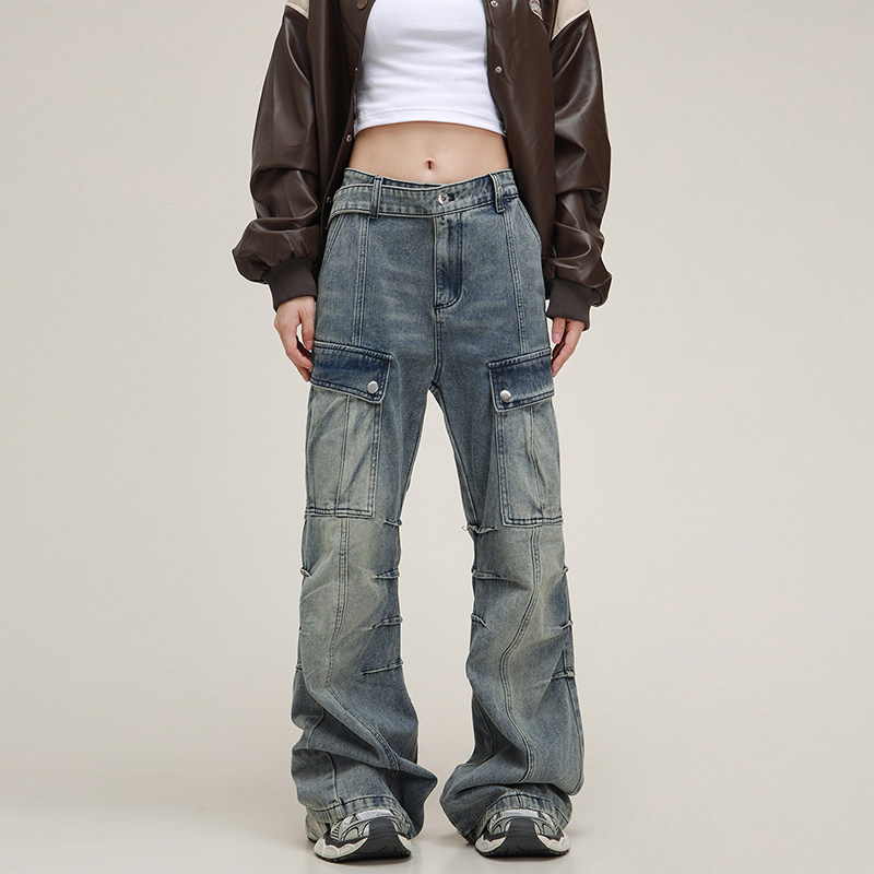 Дизайнерские светлые джинсы подходит для мужчин и женщин, штаны, в американском стиле, свободный прямой крой
