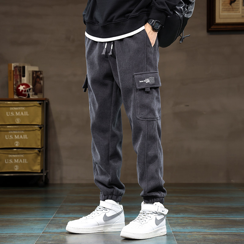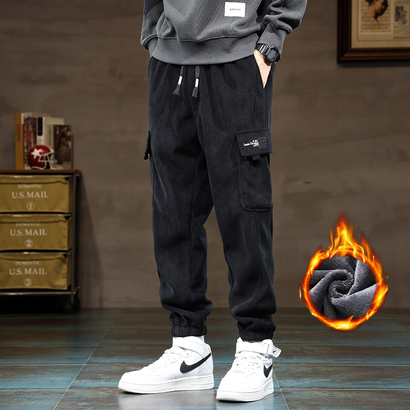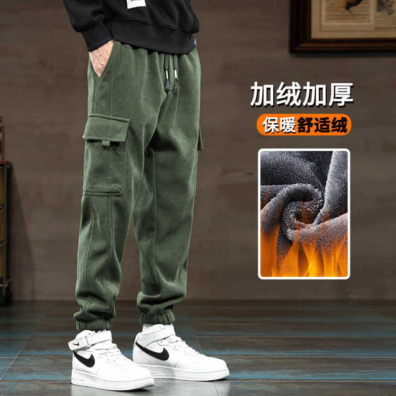 Мужские зеленые флисовые демисезонные штаны, зимние джинсы с начесом, повседневные брюки, коллекция 2023, свободный крой