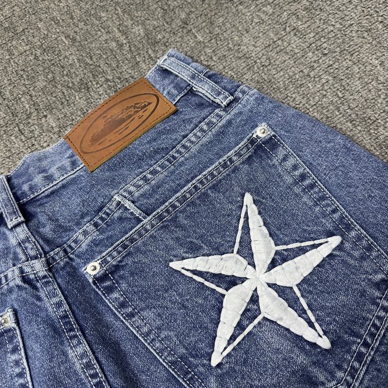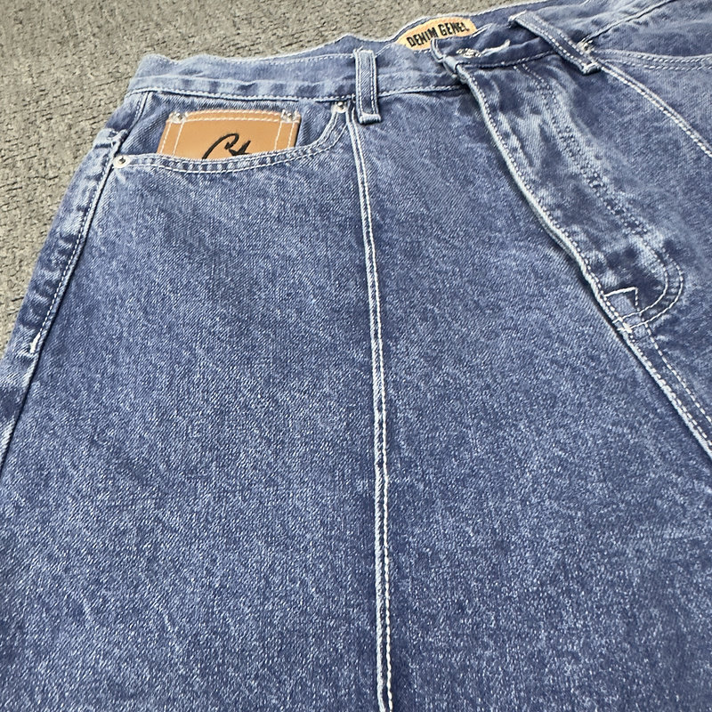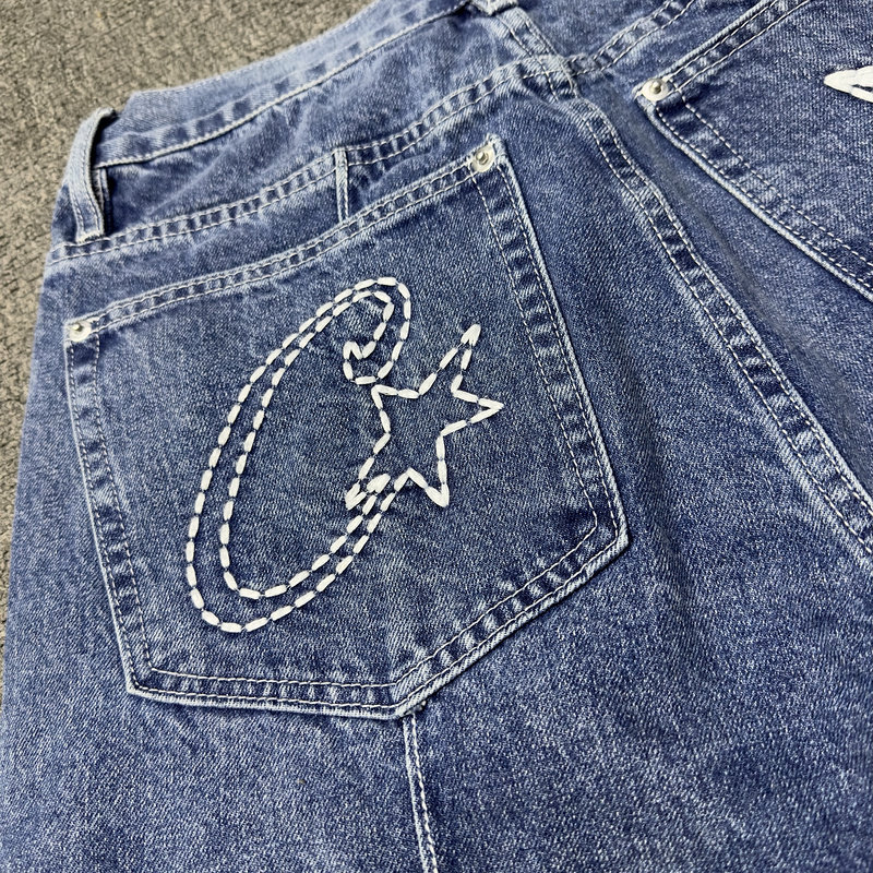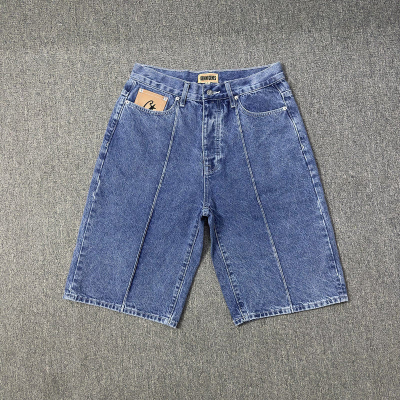 Джинсовая юбка, мужские летние шорты, трендовые штаны, с вышивкой, оверсайз