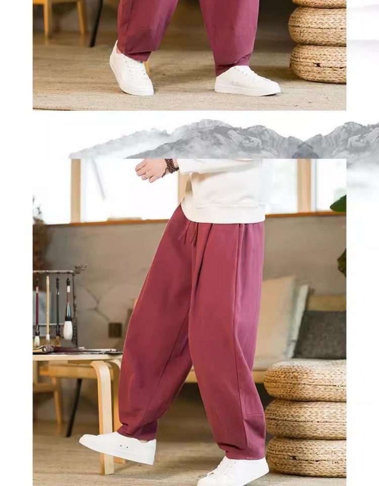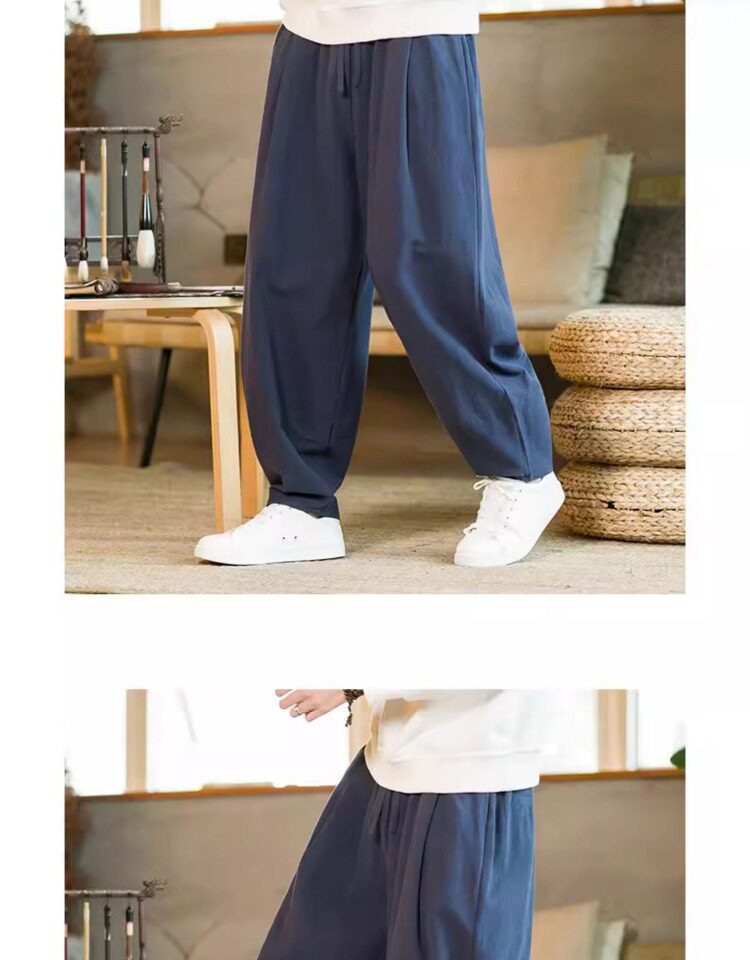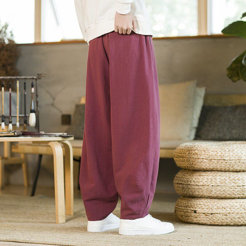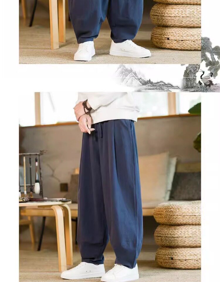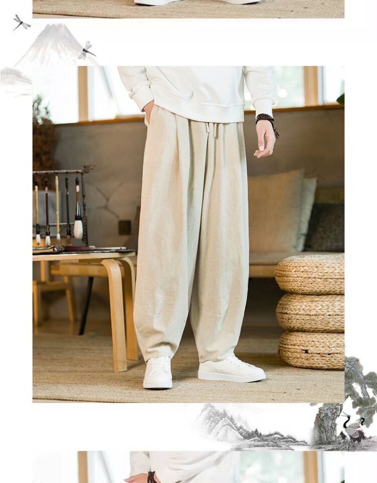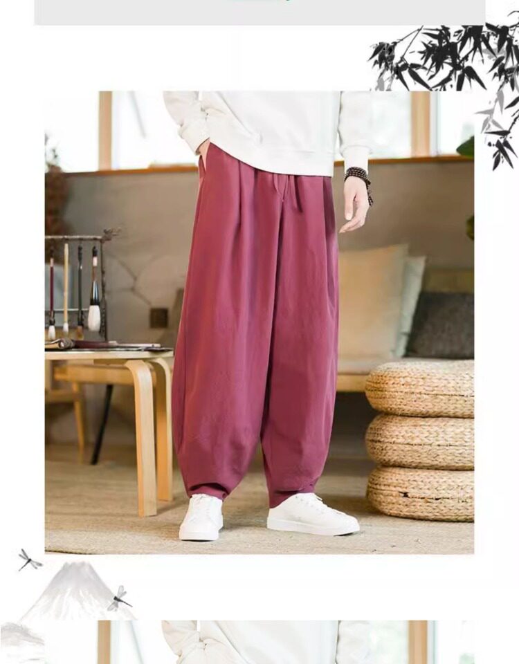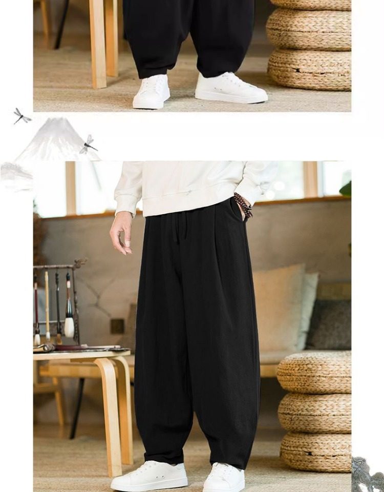 Летние китайские штаны, ханьфу, фонарь, китайский стиль, оверсайз, из хлопка и льна
