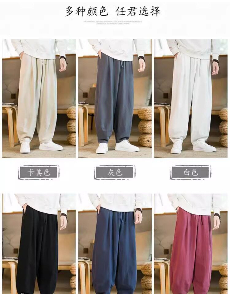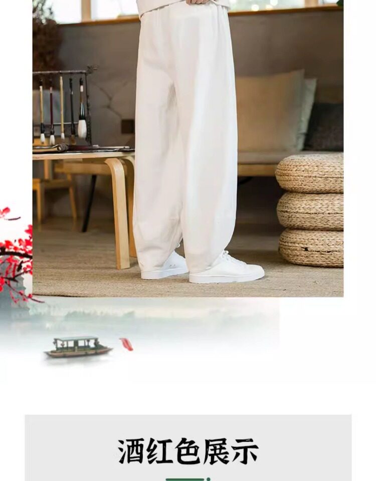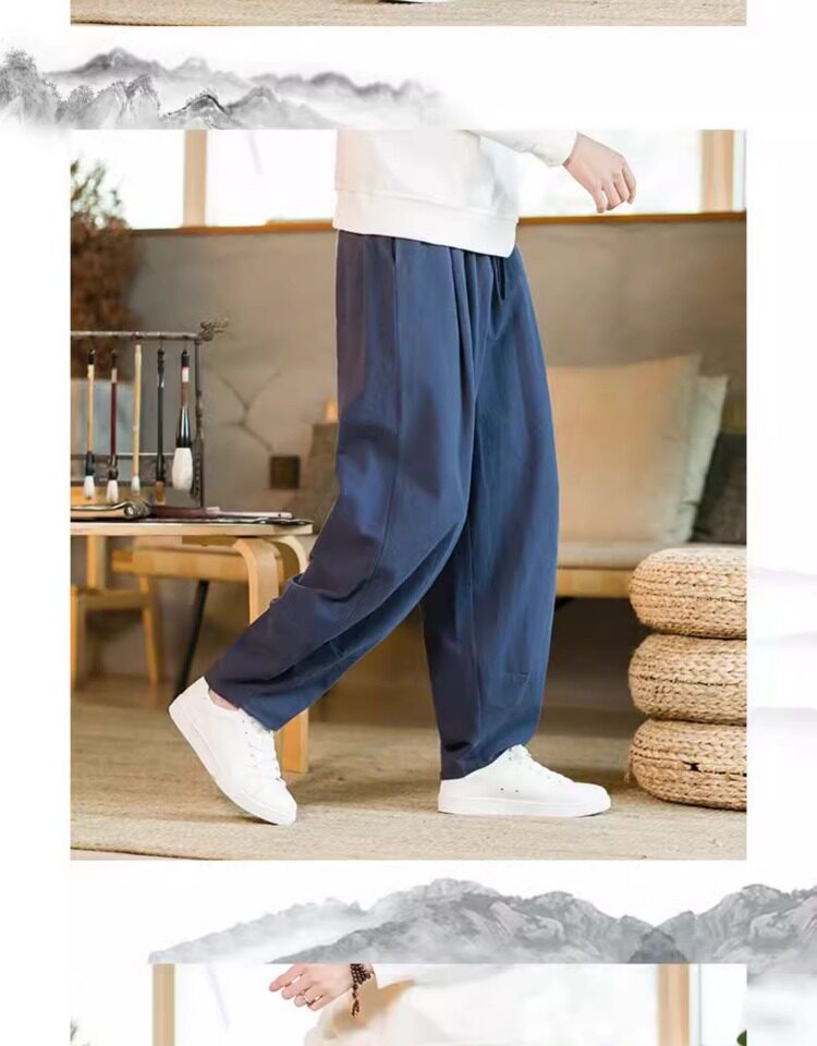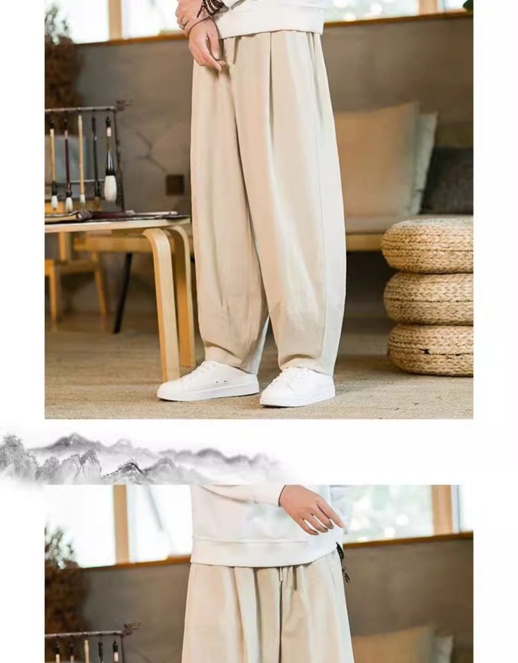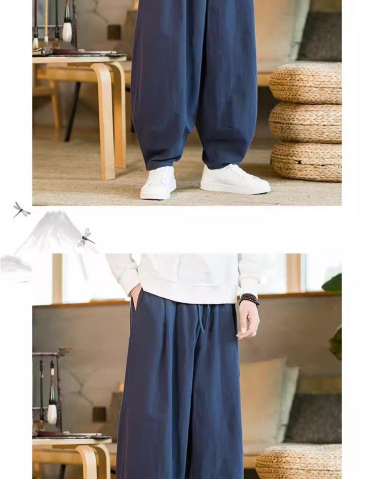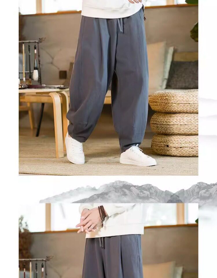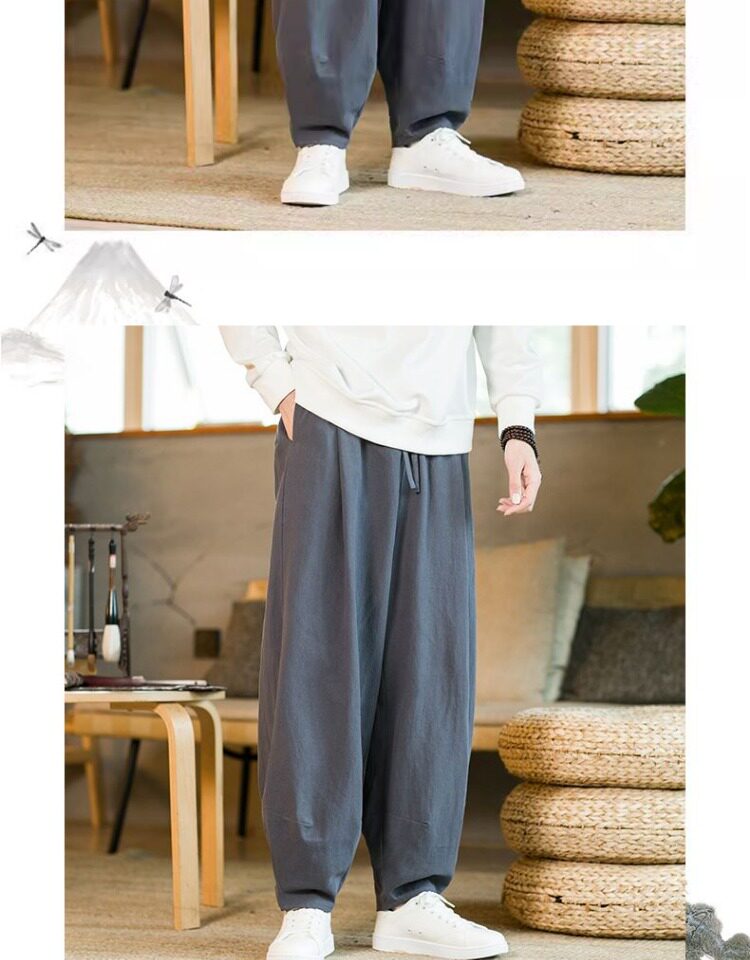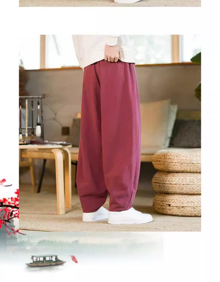 Летние китайские штаны, ханьфу, фонарь, китайский стиль, оверсайз, из хлопка и льна