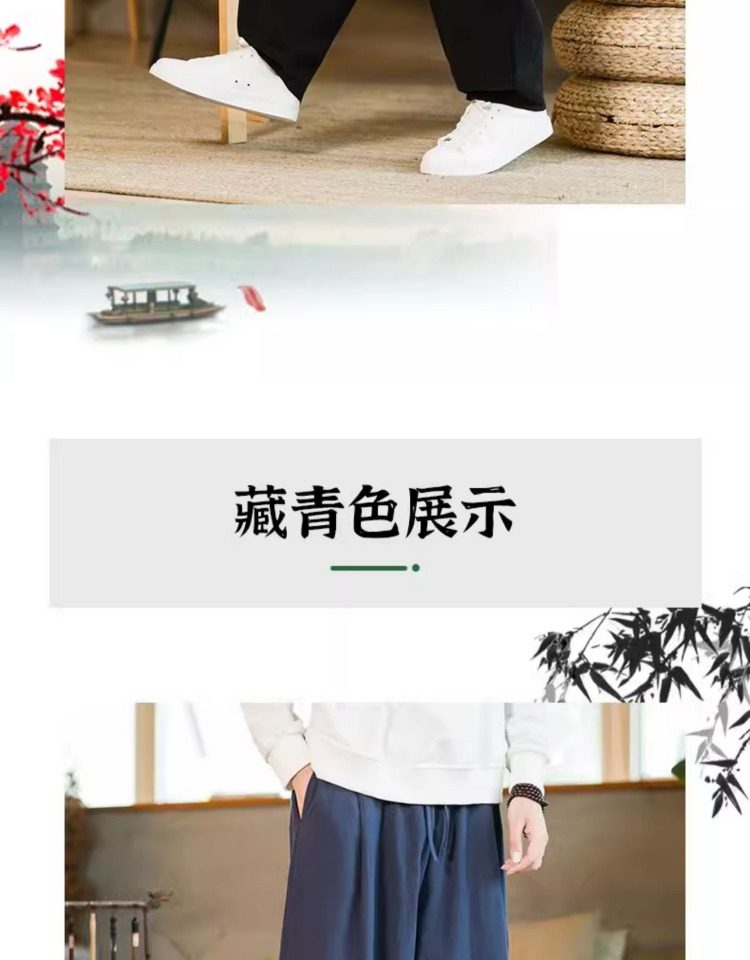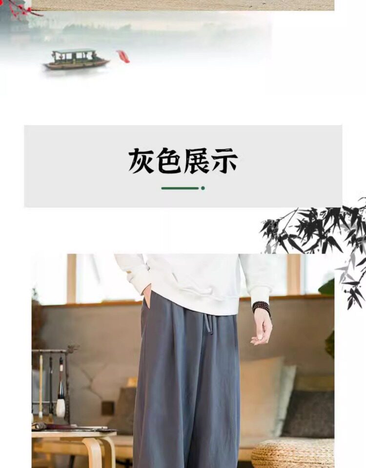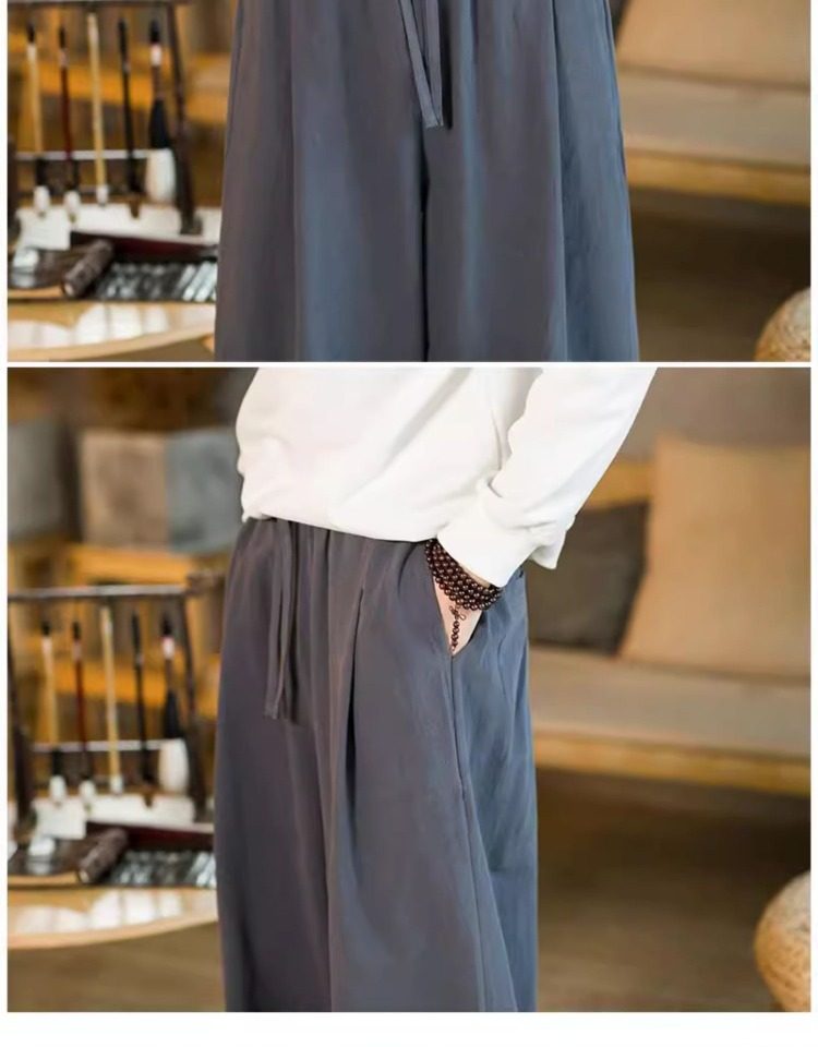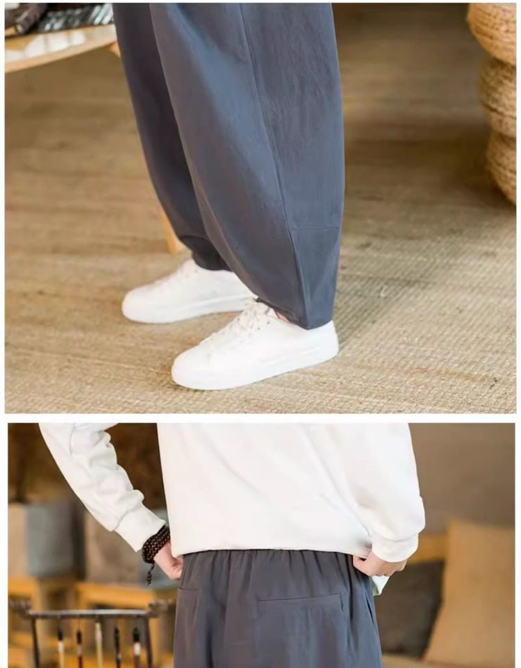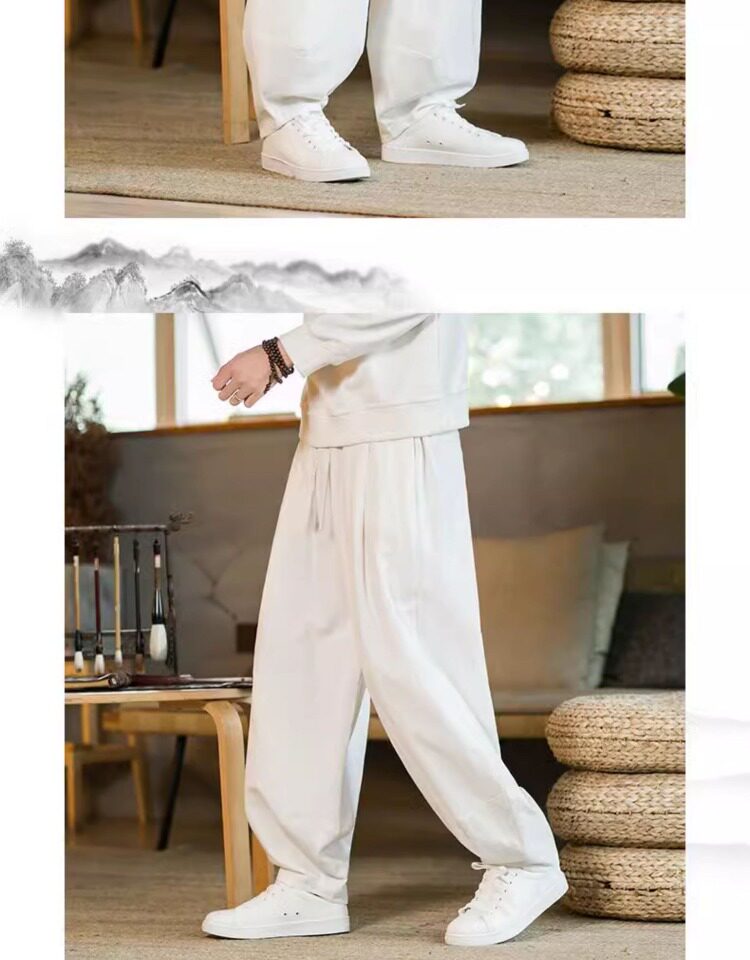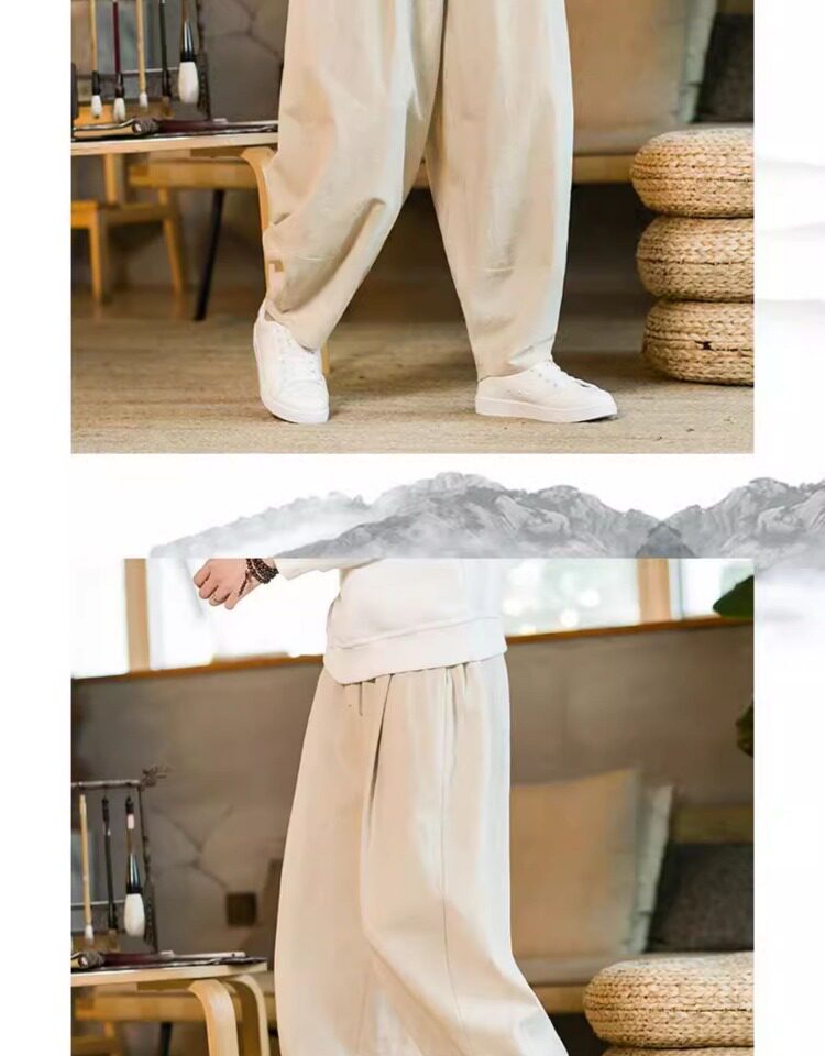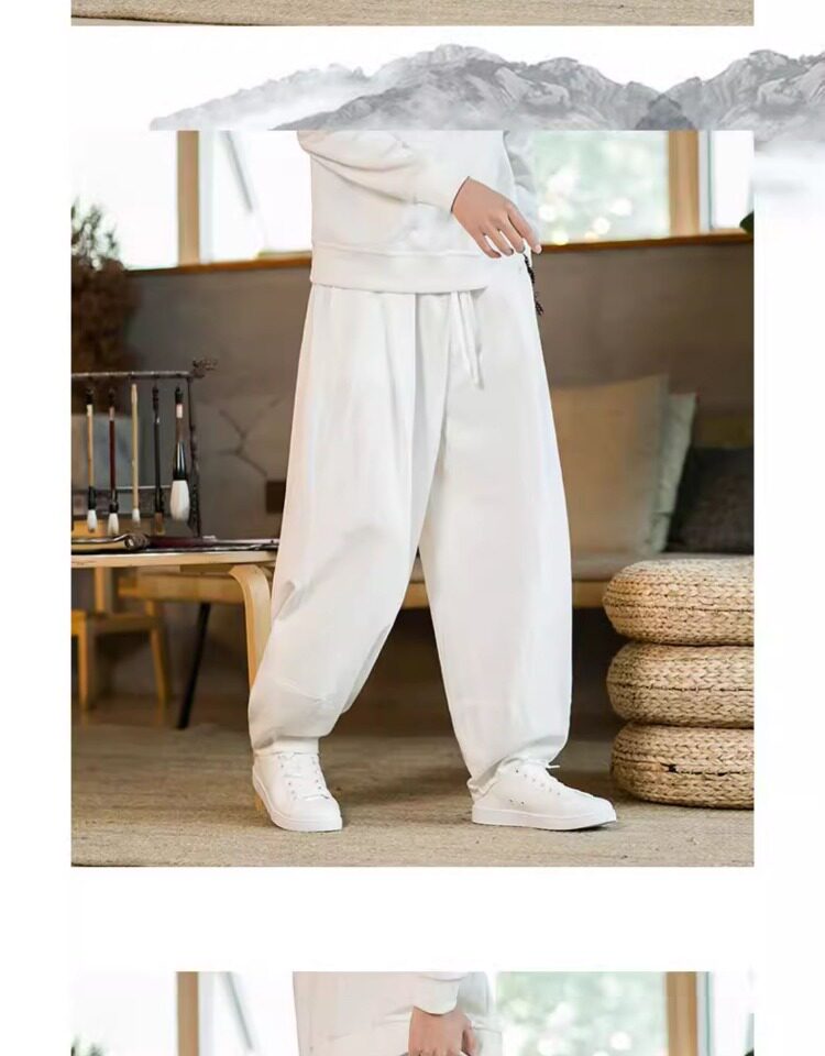 Летние китайские штаны, ханьфу, фонарь, китайский стиль, оверсайз, из хлопка и льна