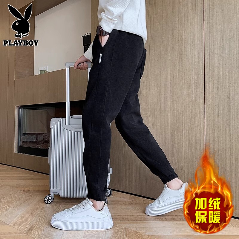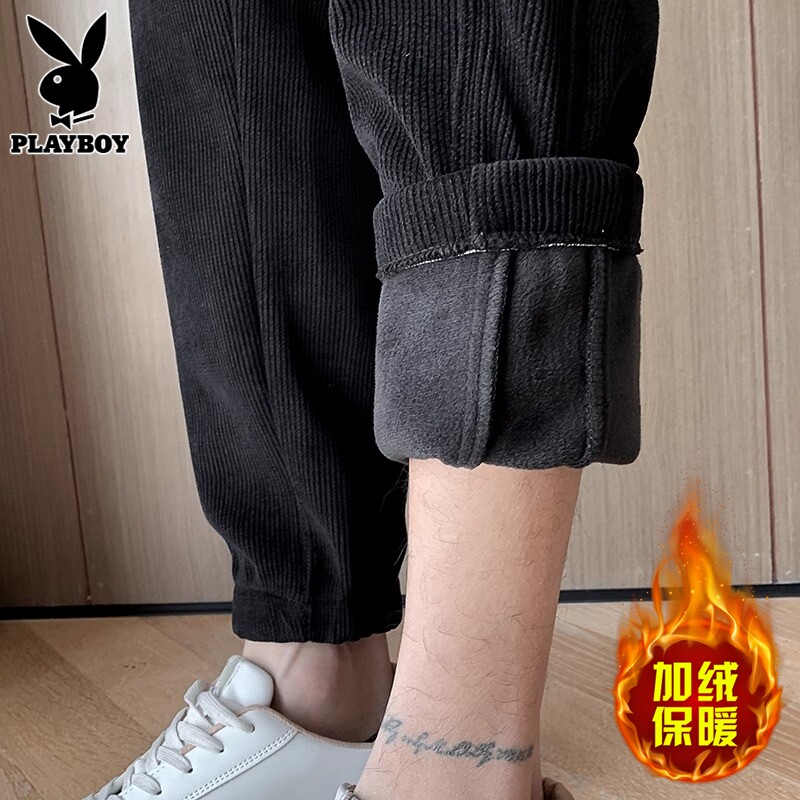 Playboy, джинсы с начесом, мужские вельветовые зимние штаны, оверсайз, свободный крой