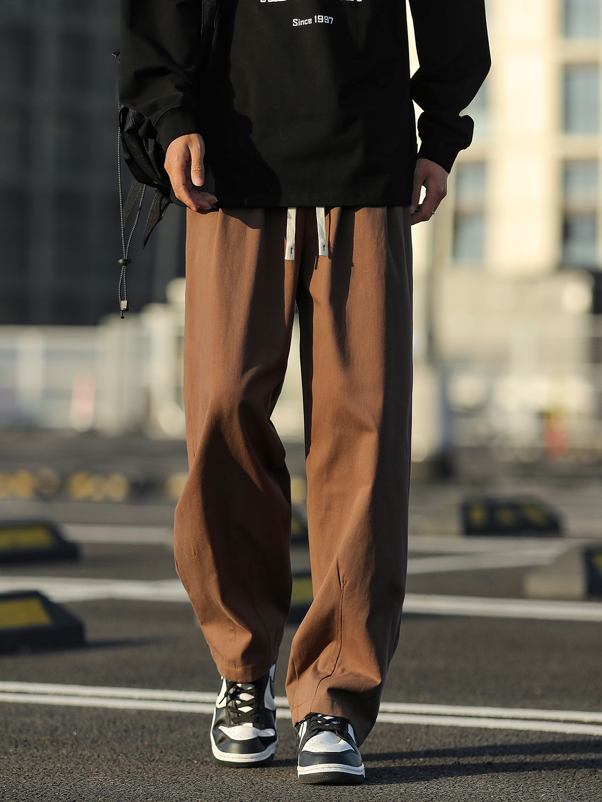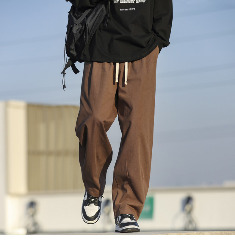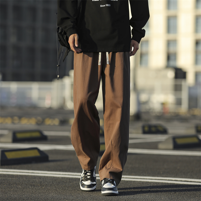 Хлопковые демисезонные японские однотонные штаны, оверсайз, свободный прямой крой