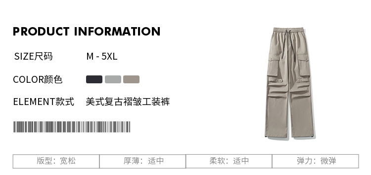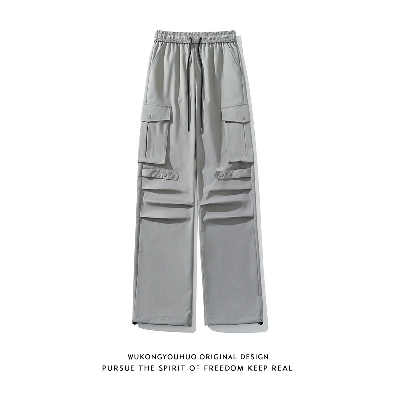 悟空有货 Ретро цветные трендовые штаны, в американском стиле, свободный прямой крой, оверсайз