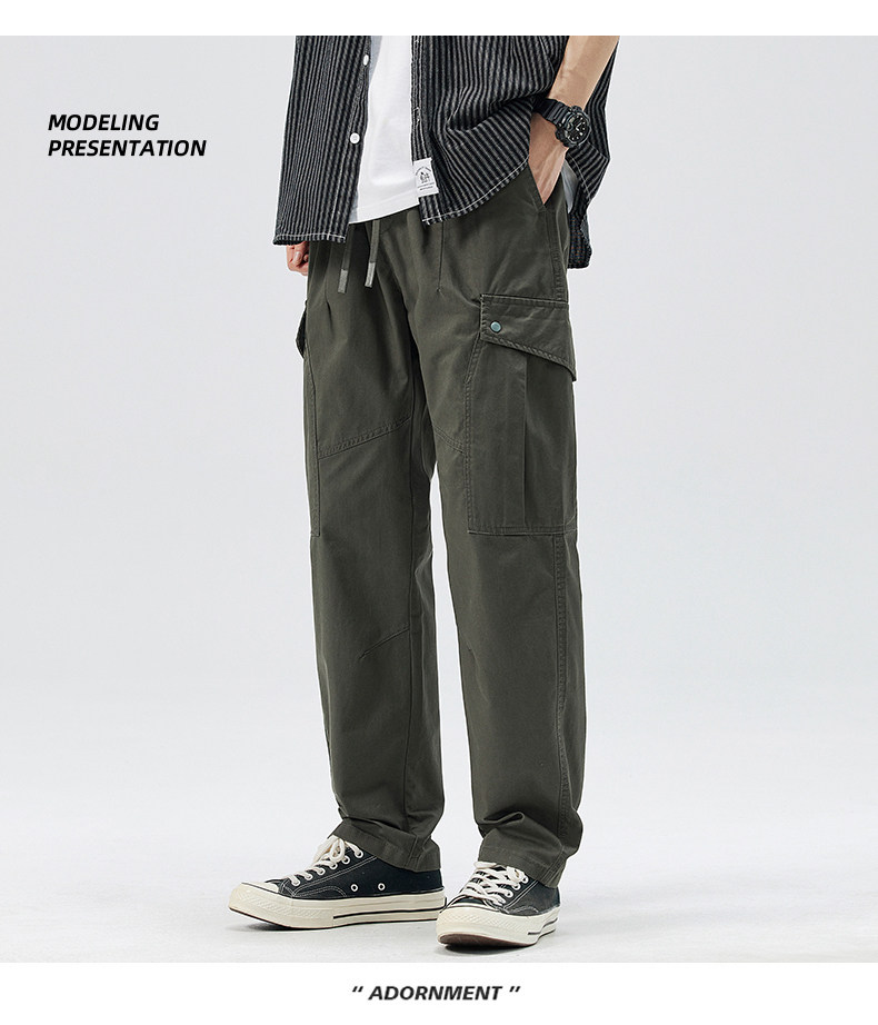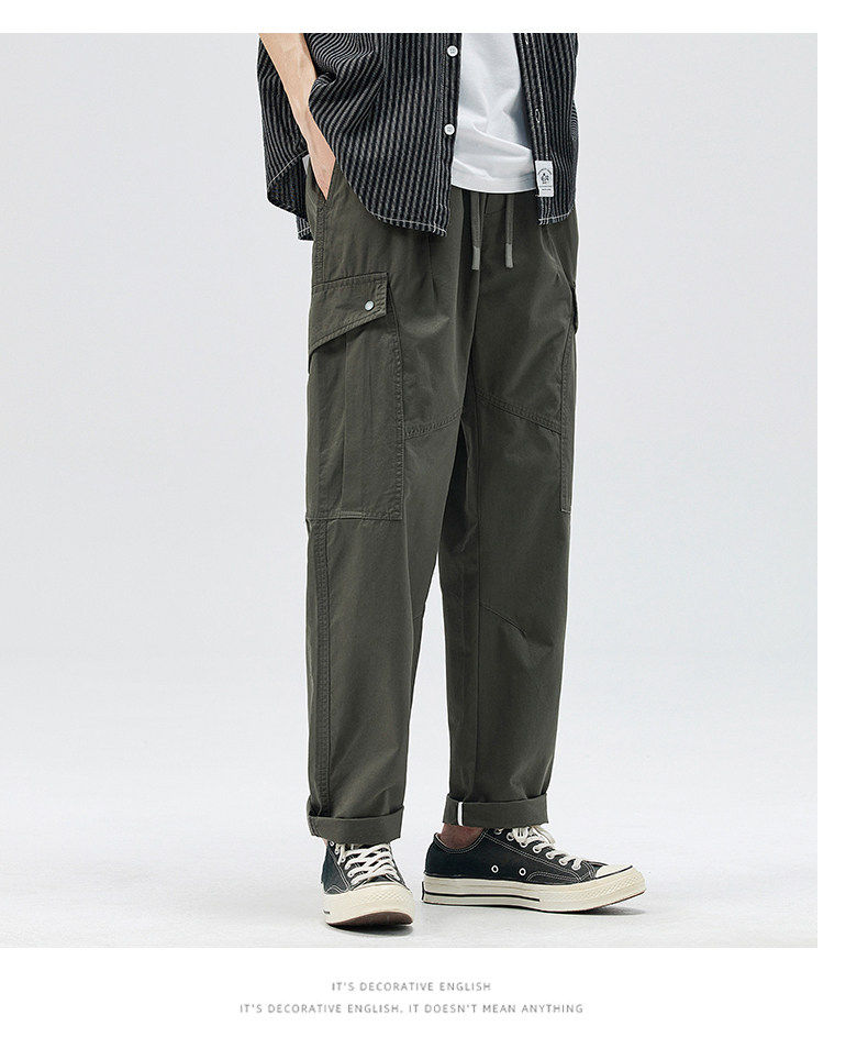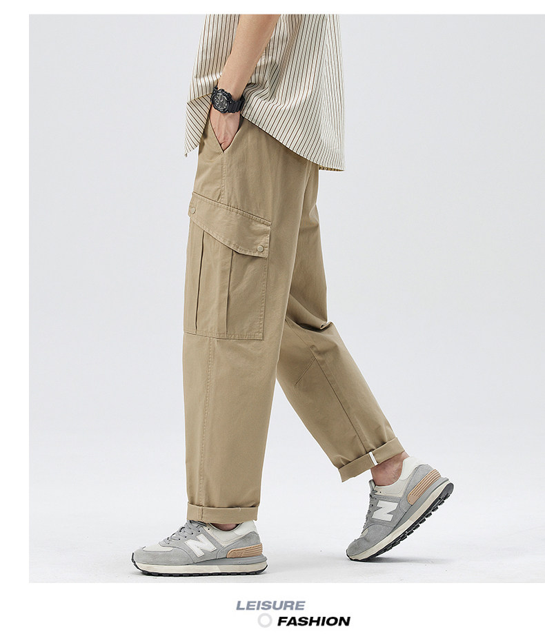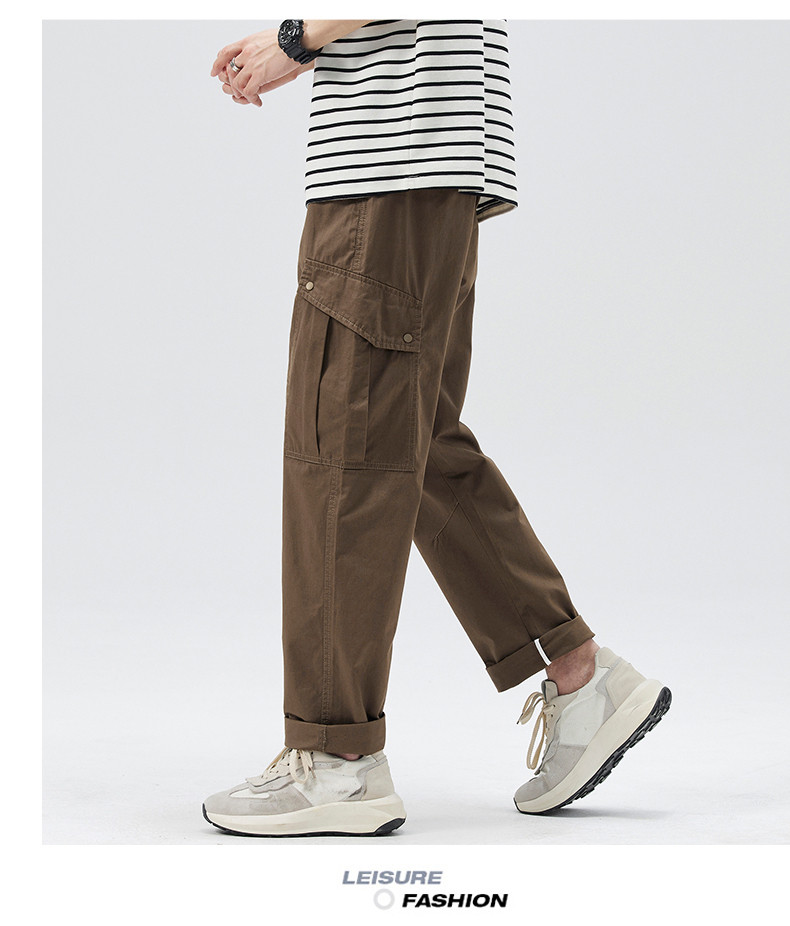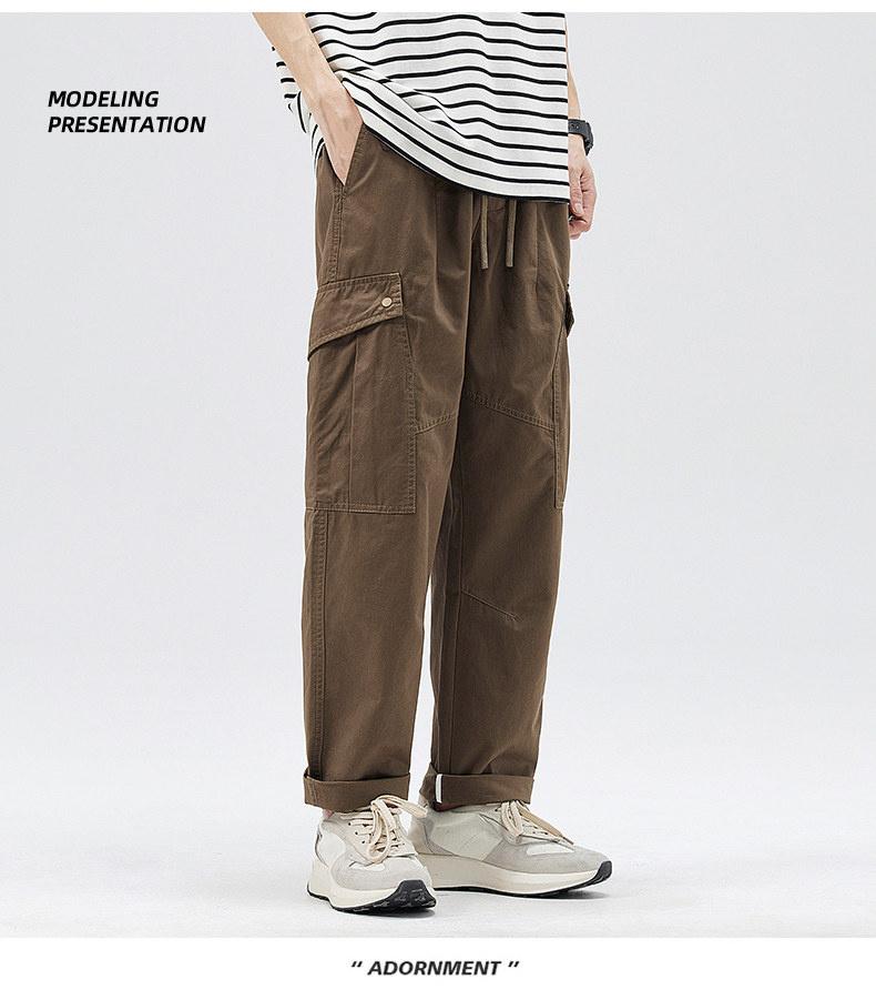 Демисезонные штаны, хаки японские повседневные брюки, свободный прямой крой