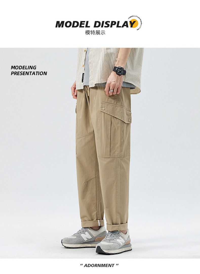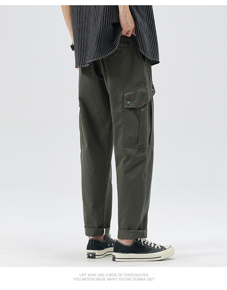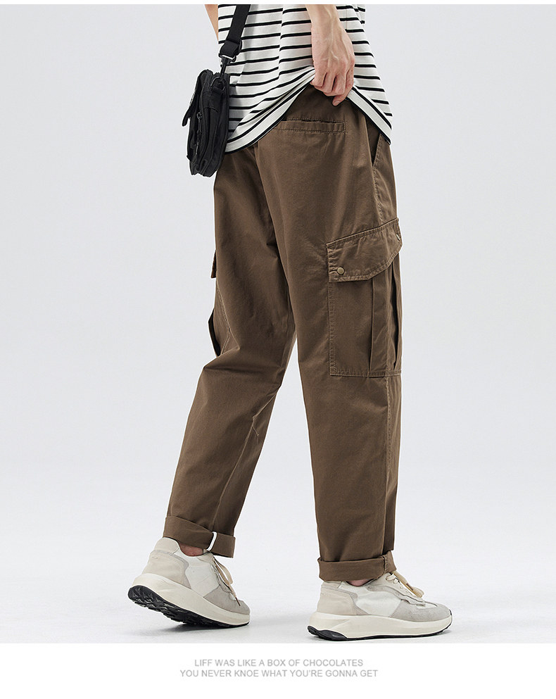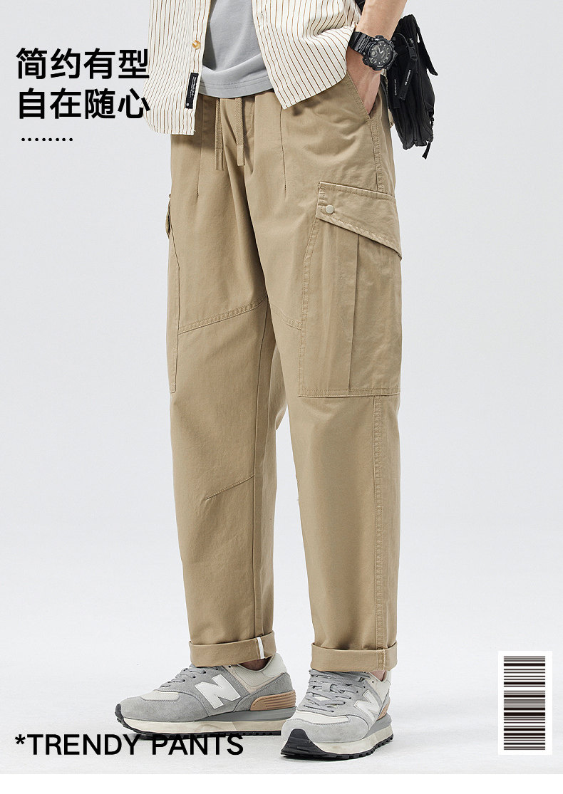Демисезонные штаны, хаки японские повседневные брюки, свободный прямой крой