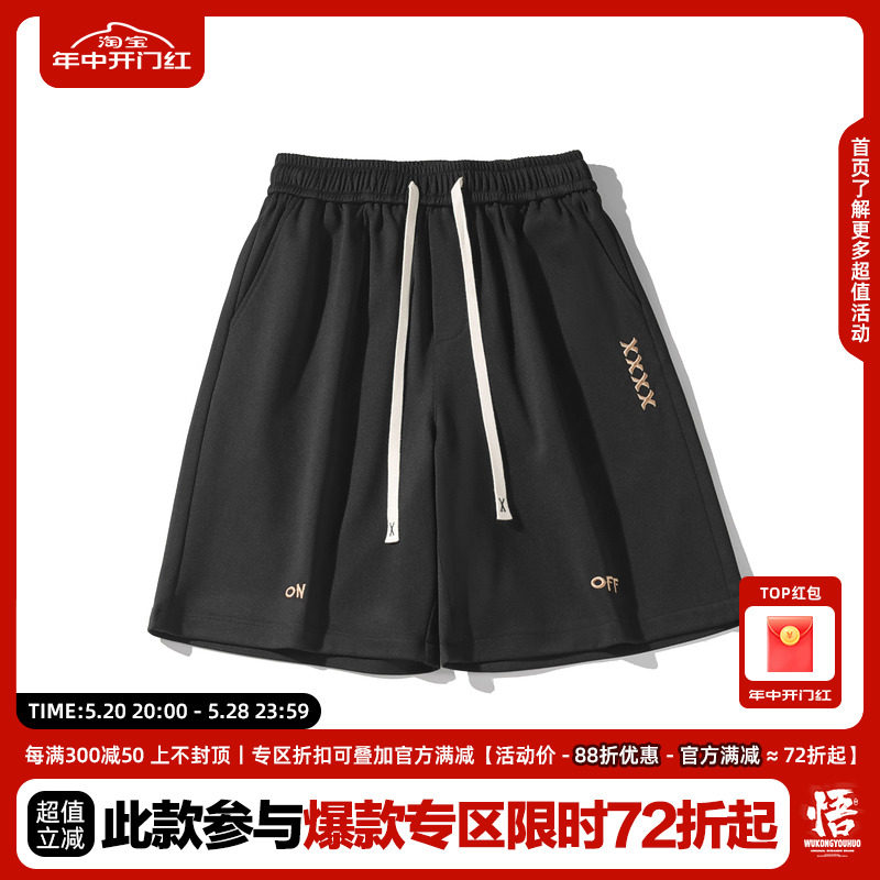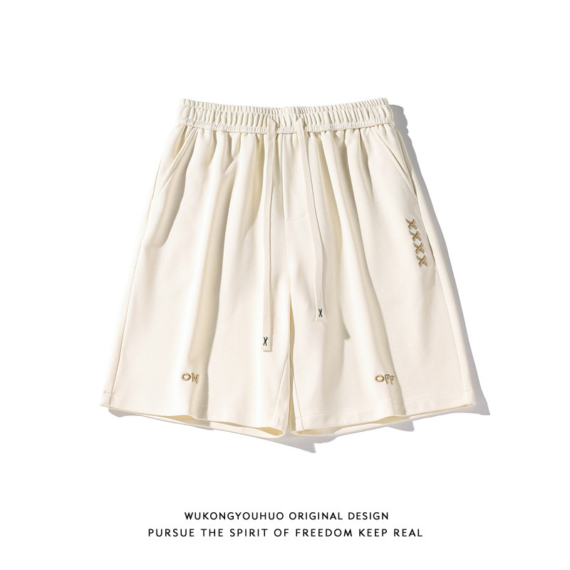 Спортивные летние шорты, штаны, с вышивкой, свободный прямой крой