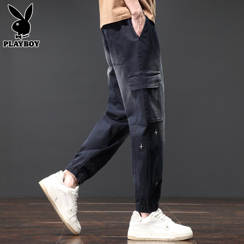 Playboy, мужские хлопковые тонкие черные спортивные штаны, свободный крой