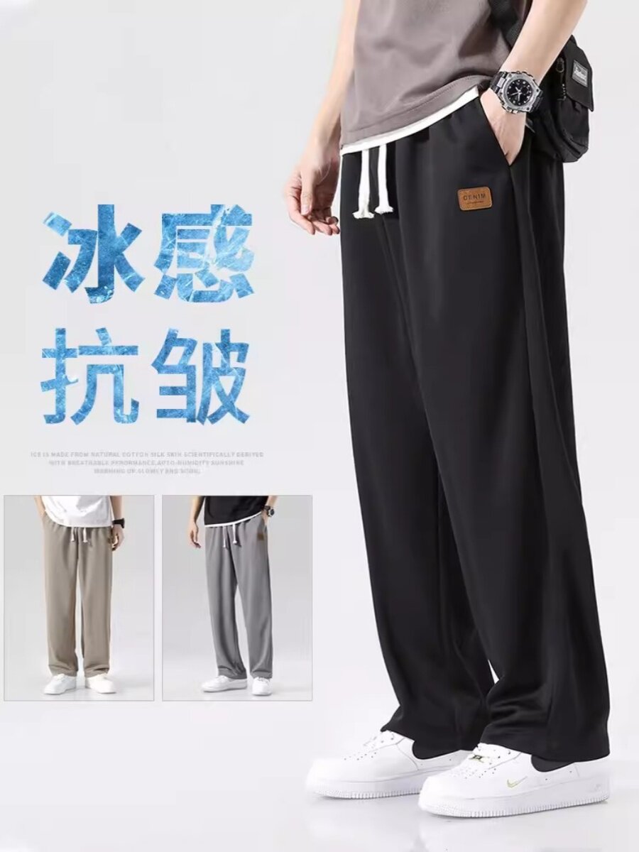 Шелковые быстросохнущие летние тонкие трендовые спортивные штаны для отдыха, свободный прямой крой