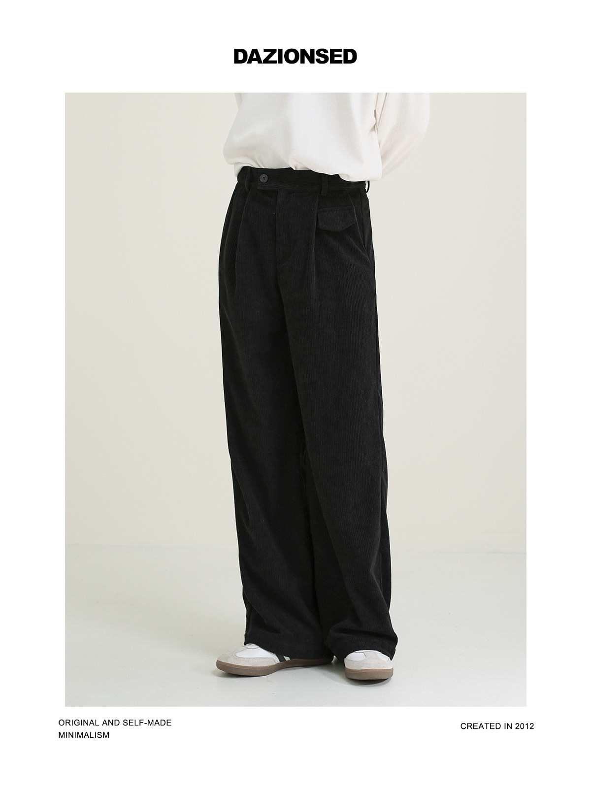 Вельветовый потолочный светильник, демисезонные ретро японские черные штаны, свободный прямой крой, оверсайз
