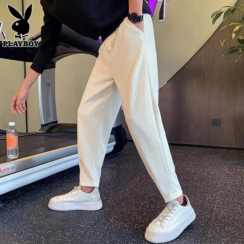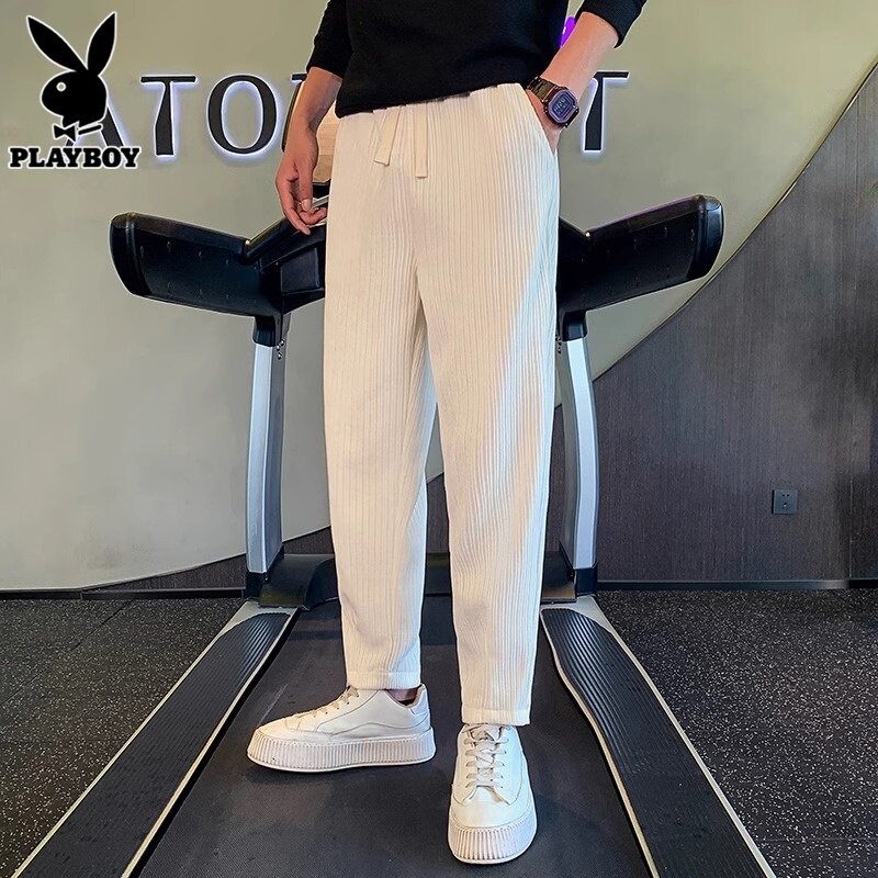 Playboy, мужские штаны, белые тонкие трендовые повседневные брюки для отдыха, свободный крой