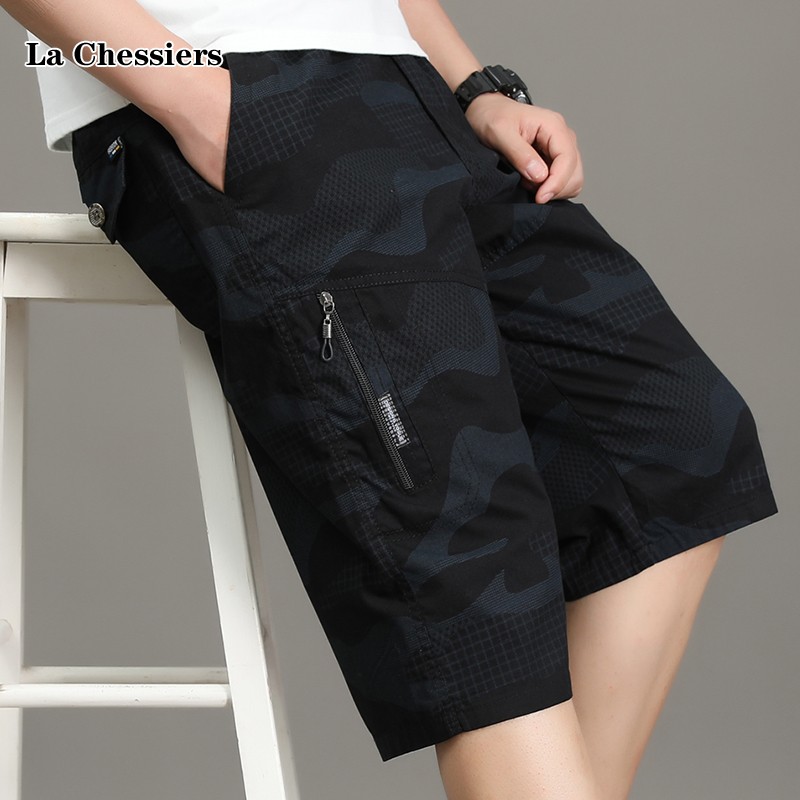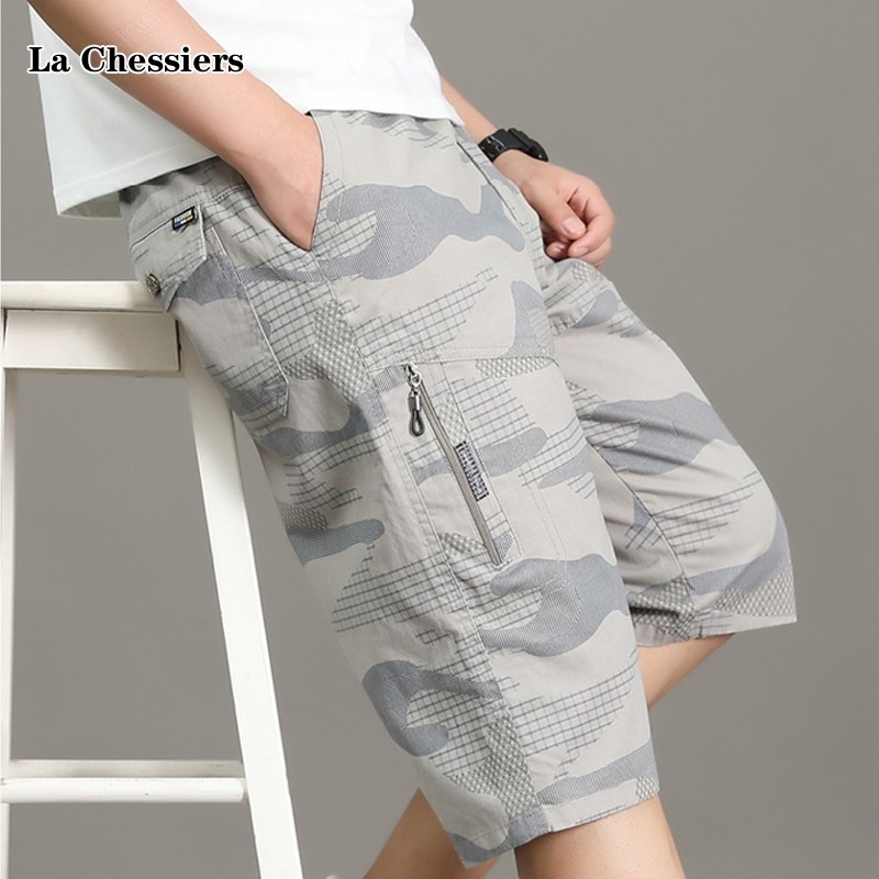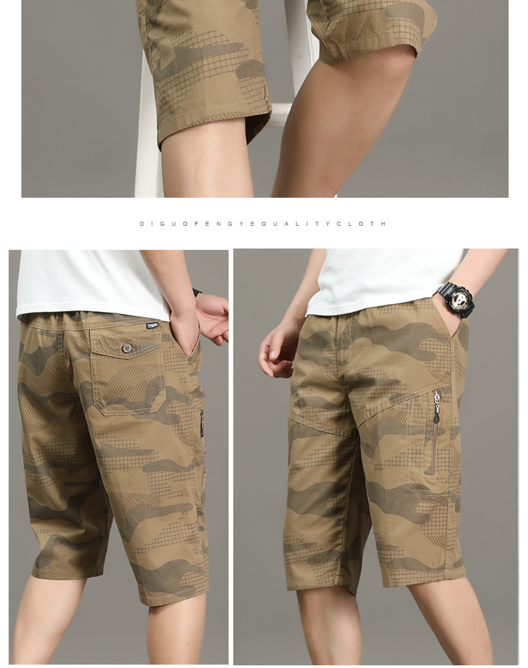 Мужские летние тонкие камуфляжные штаны, хлопковые шорты, для среднего возраста, свободный прямой крой