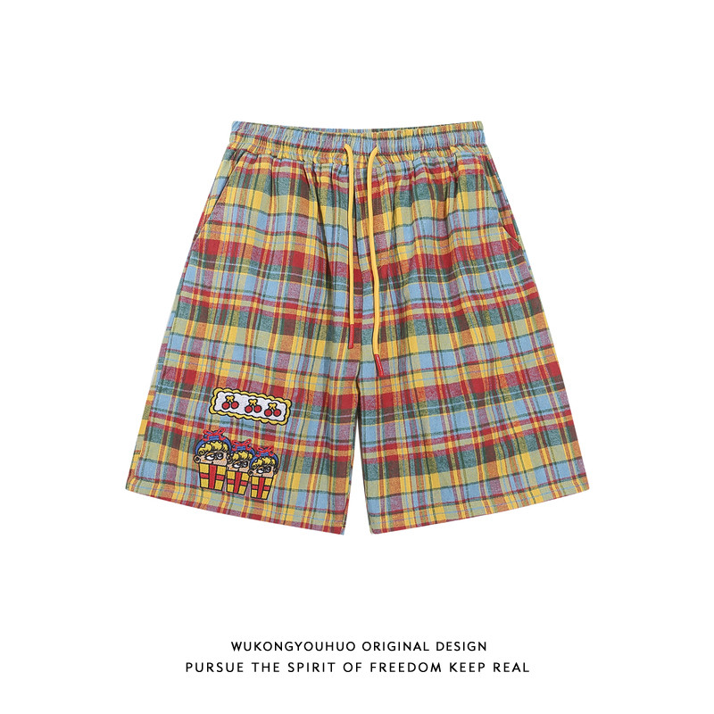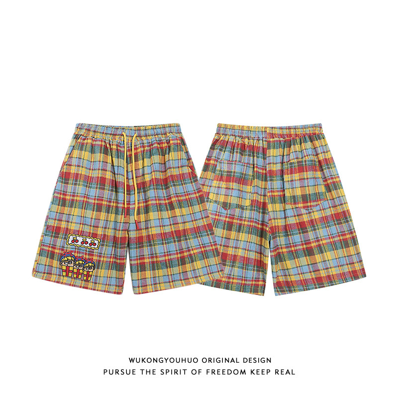 悟空有货 Мультяшные цветные летние шорты подходит для мужчин и женщин для отдыха, штаны, с вышивкой, на шнурках