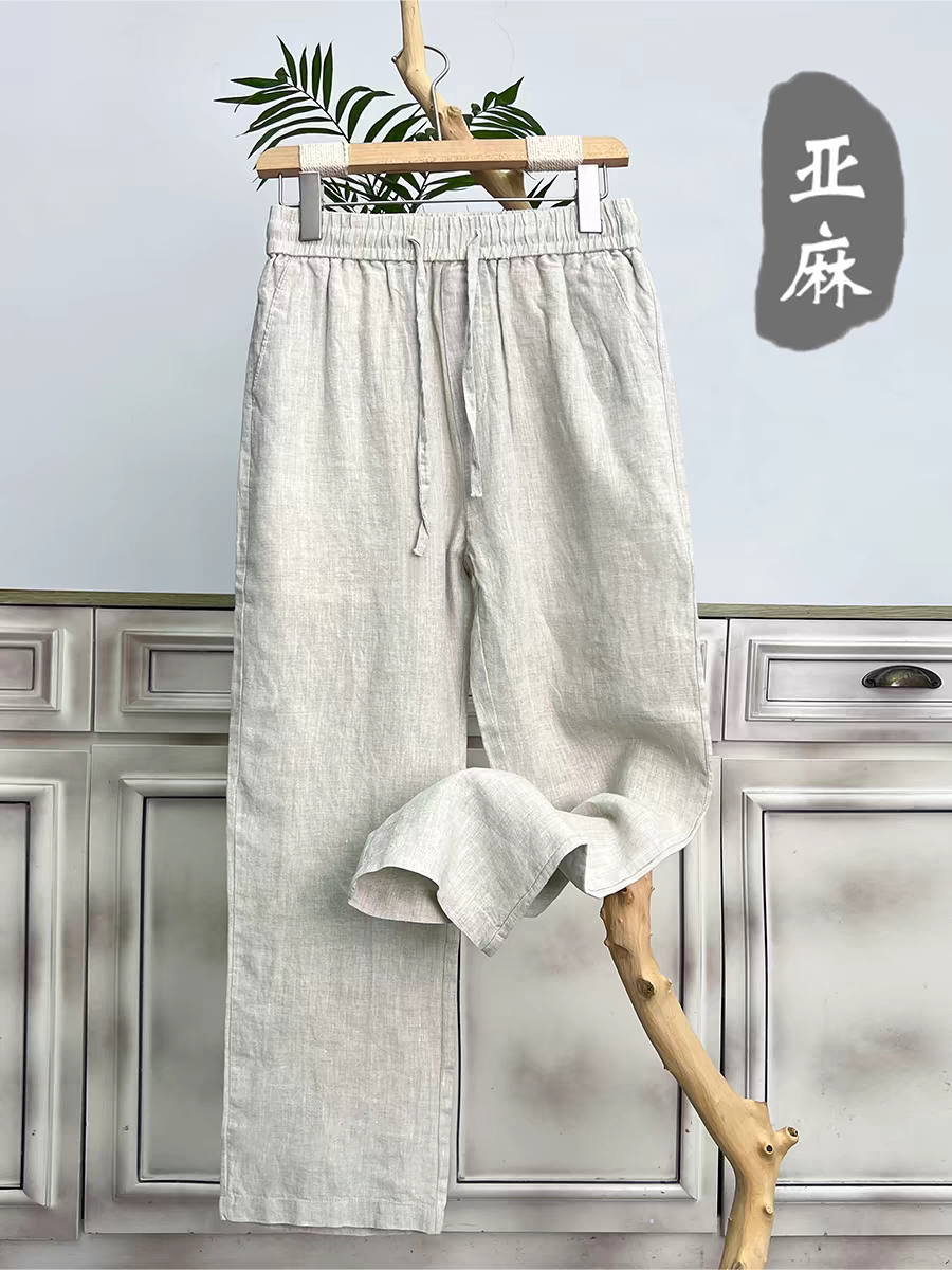 Элитные летние штаны, тонкая мужская ткань, из хлопка и льна