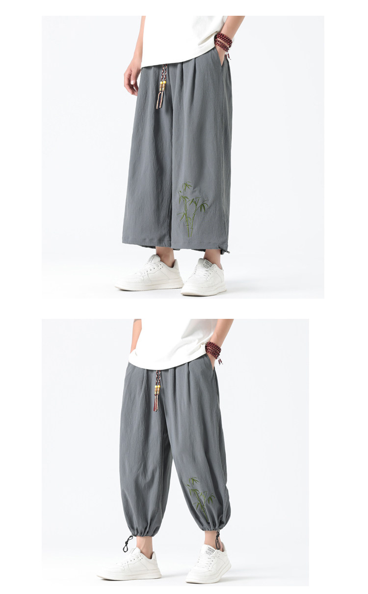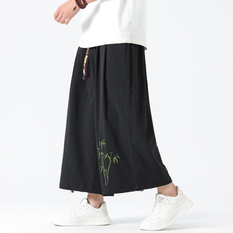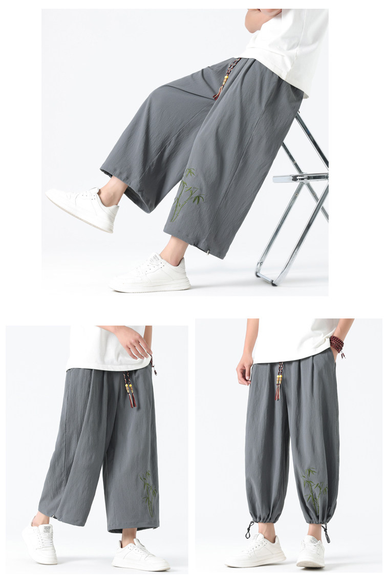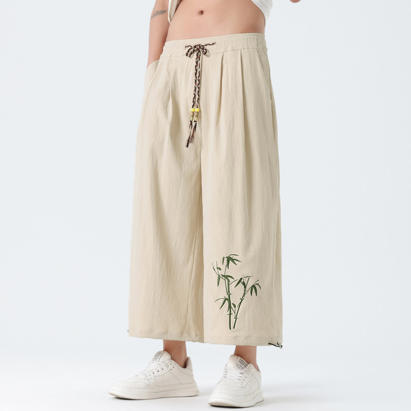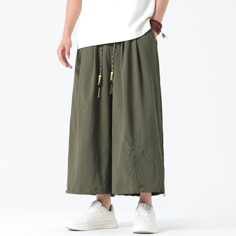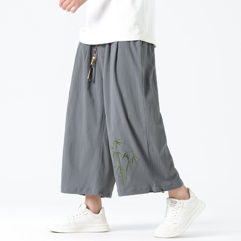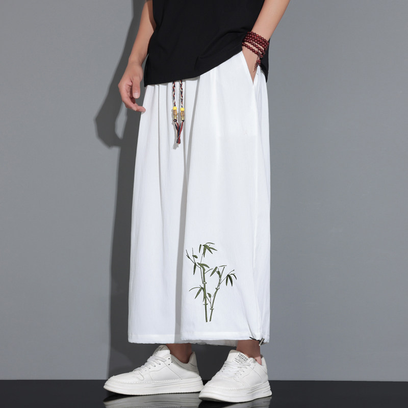 Летние тонкие штаны, китайский стиль, свободный прямой крой, с вышивкой