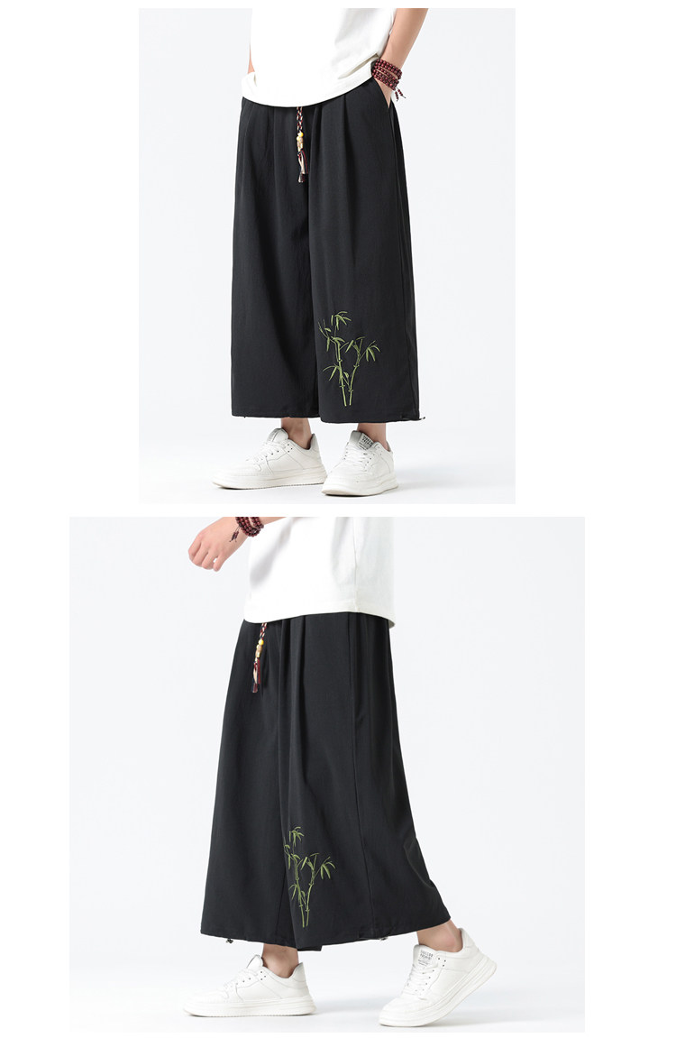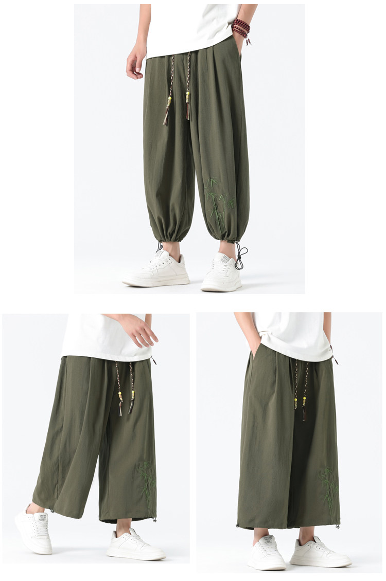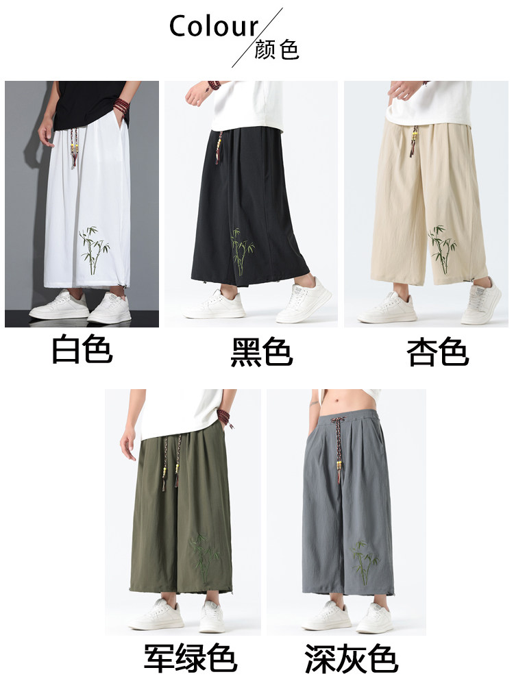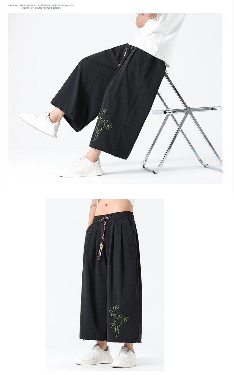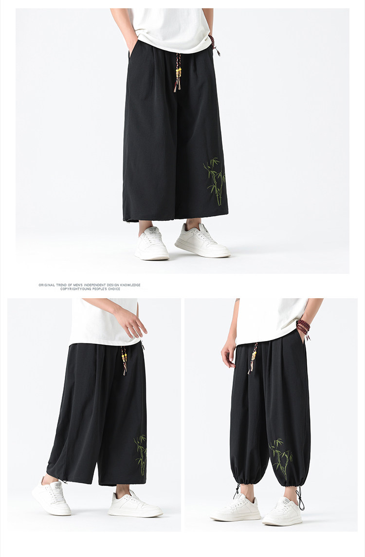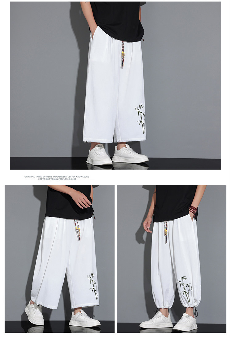 Летние тонкие штаны, китайский стиль, свободный прямой крой, с вышивкой