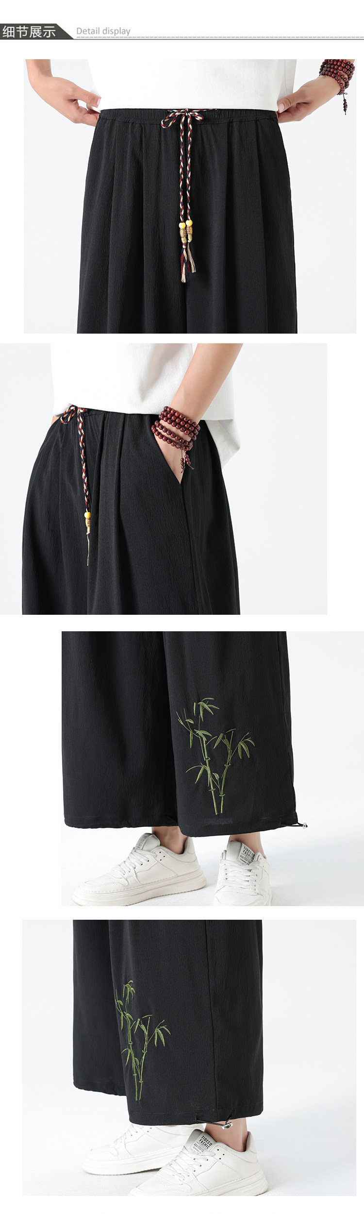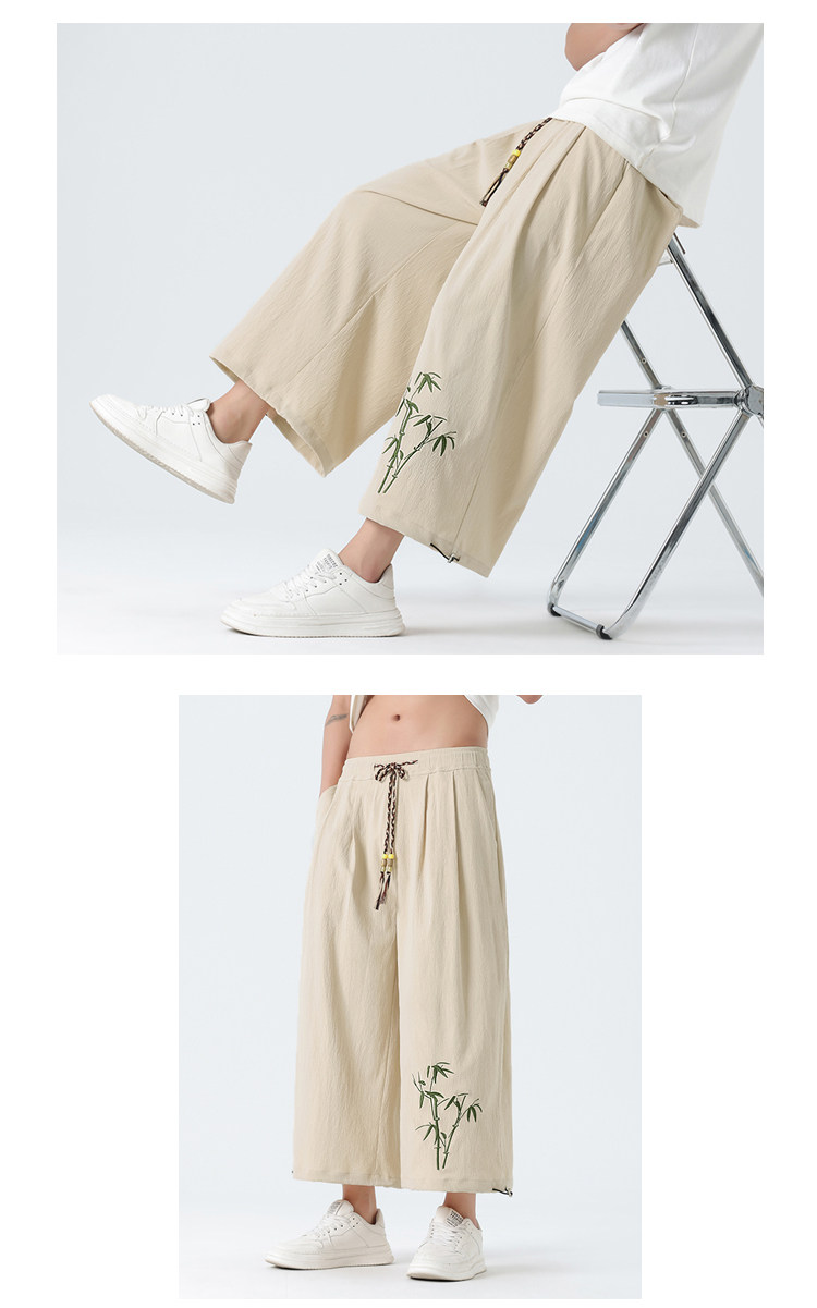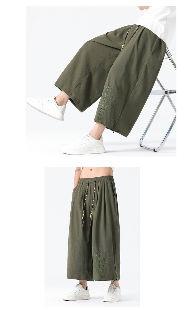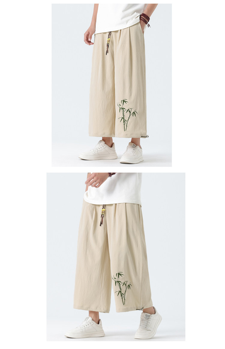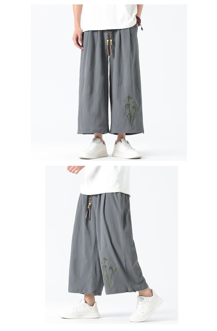 Летние тонкие штаны, китайский стиль, свободный прямой крой, с вышивкой