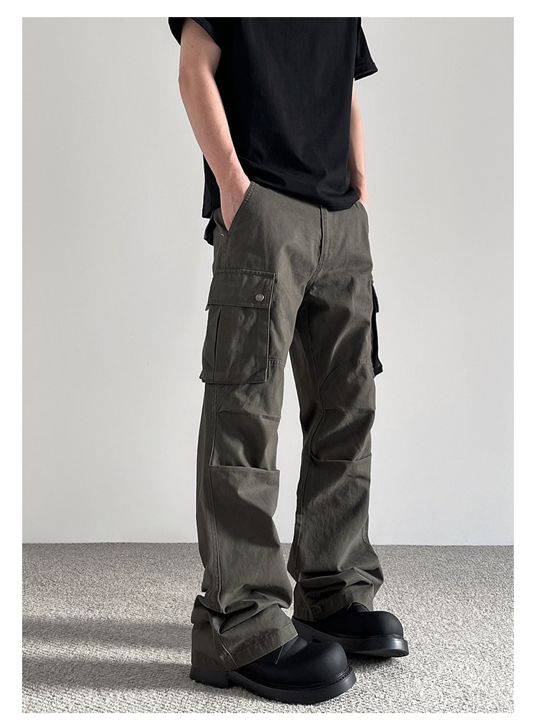 A PUEE Плиссированные комбинезоны десантника в американском стиле ретро с несколькими карманами, модные повседневные брюки прямого кроя