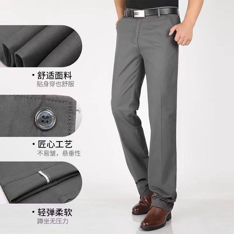 Мужские хлопковые летние тонкие штаны, для среднего возраста, свободный прямой крой, высокая талия