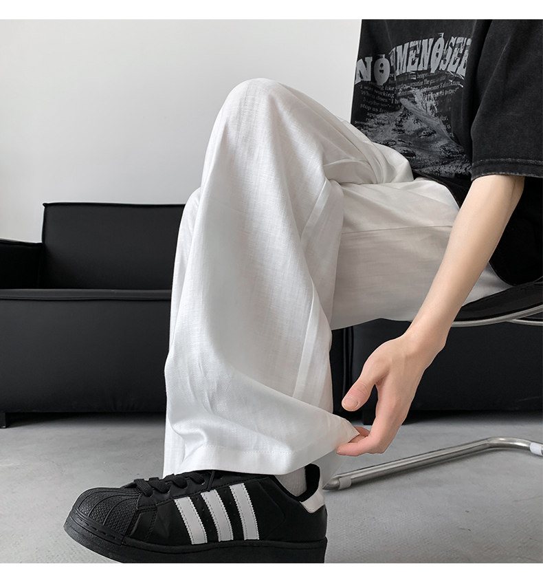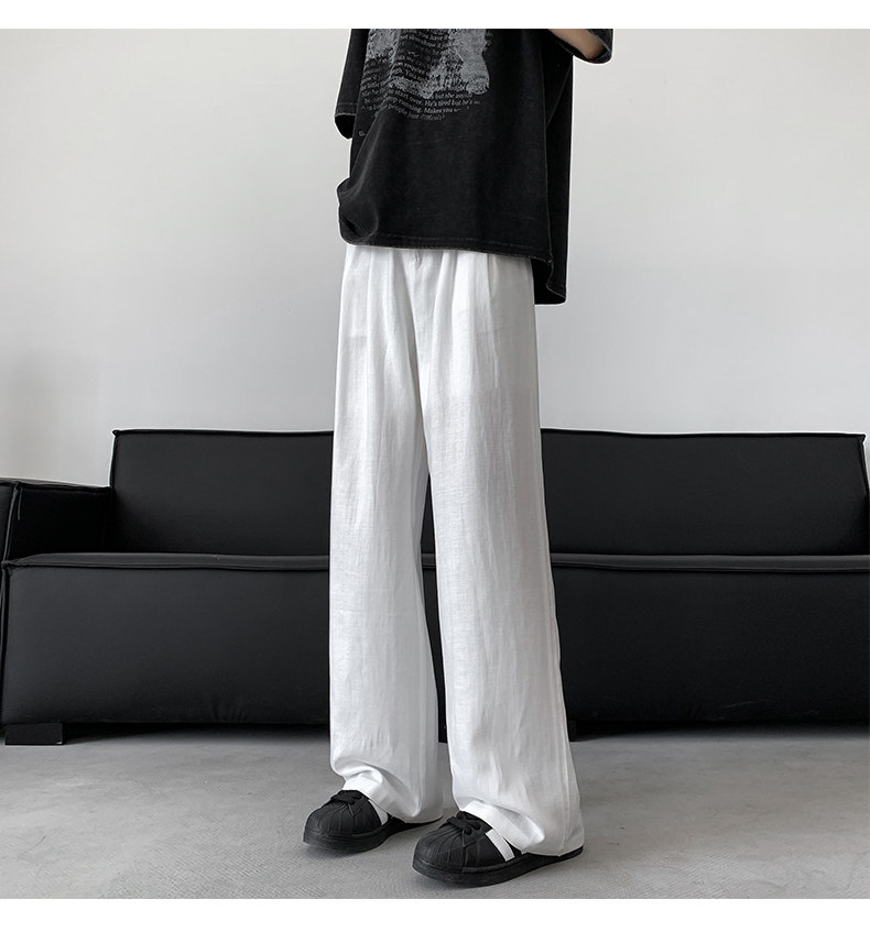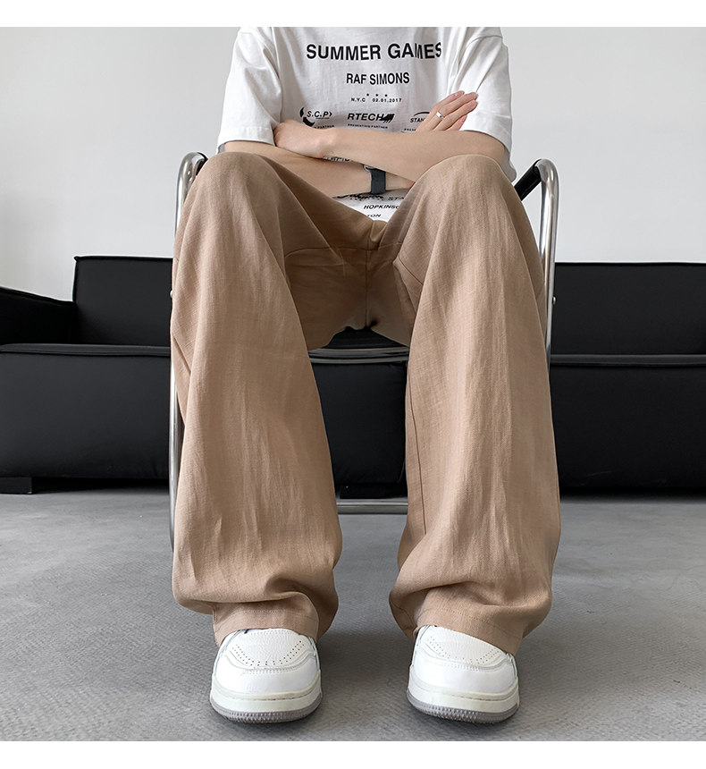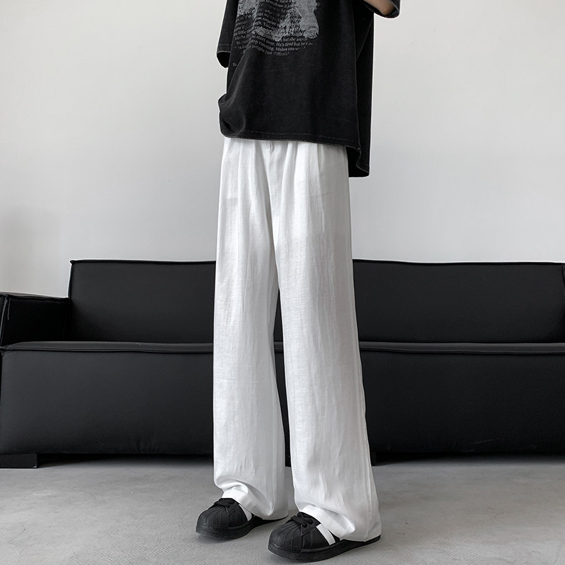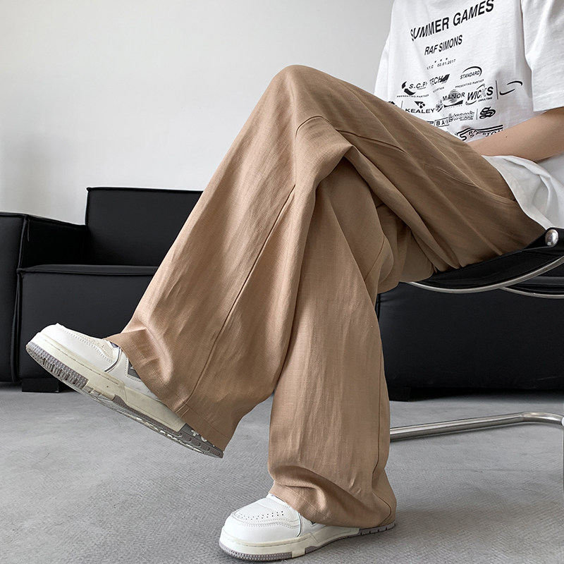 Летние тонкие шелковые штаны, из хлопка и льна, свободный прямой крой, размер