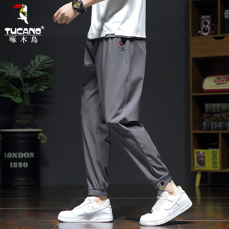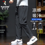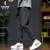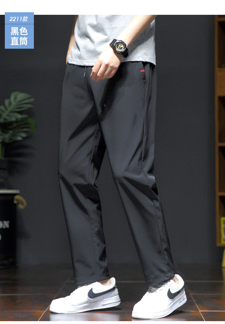 Мужские летние тонкие шелковые быстросохнущие штаны, свободный прямой крой, большой размер