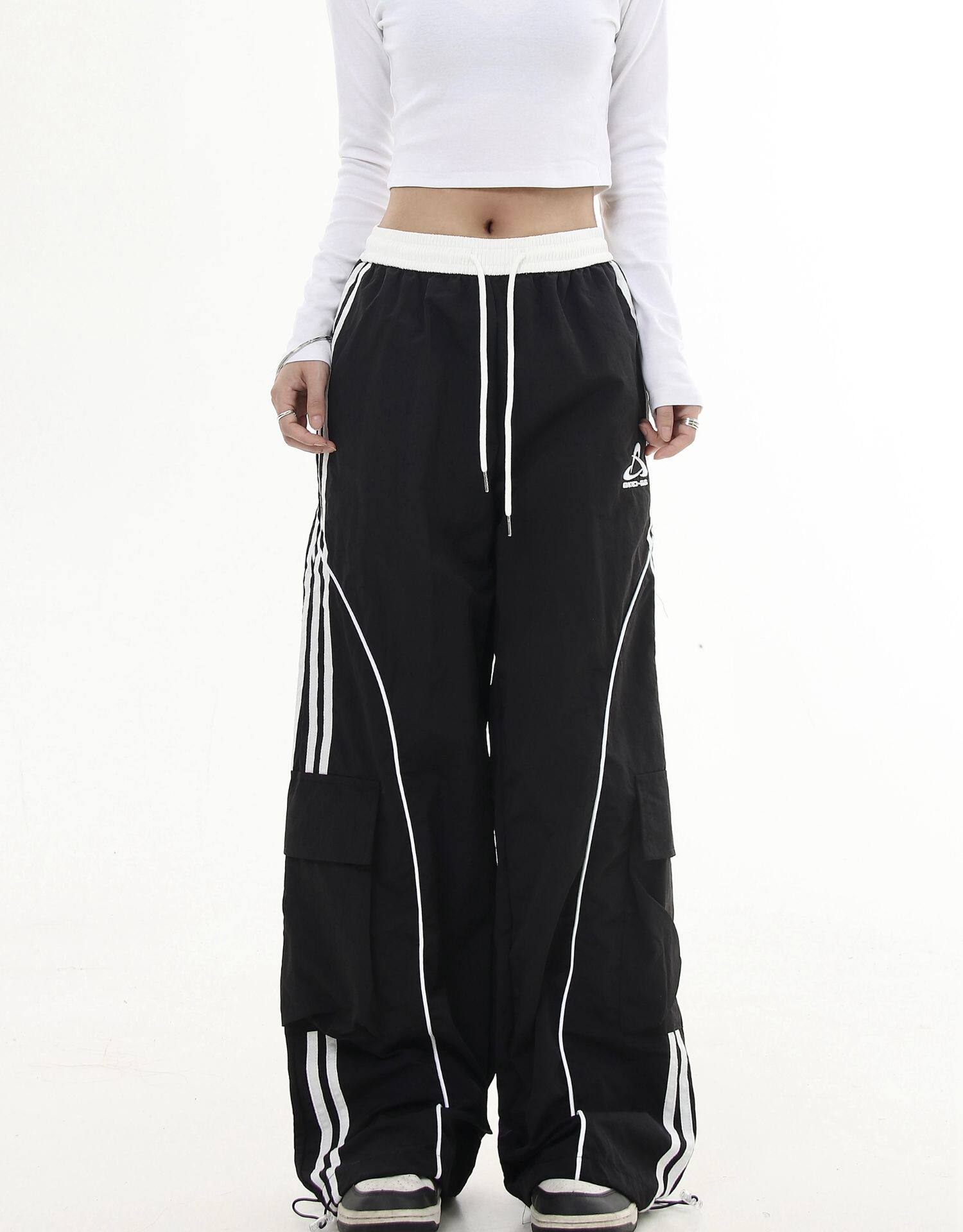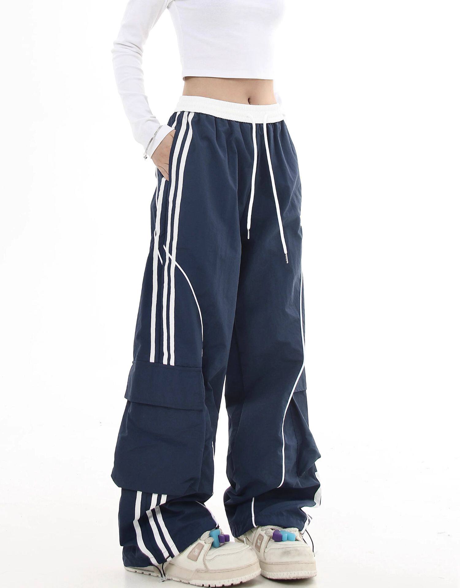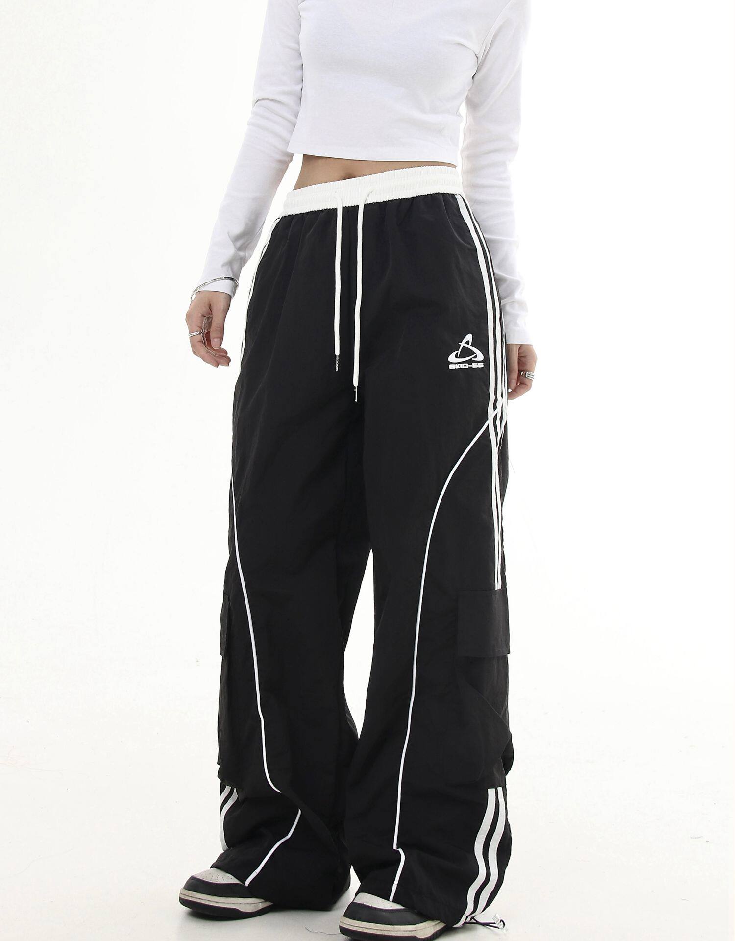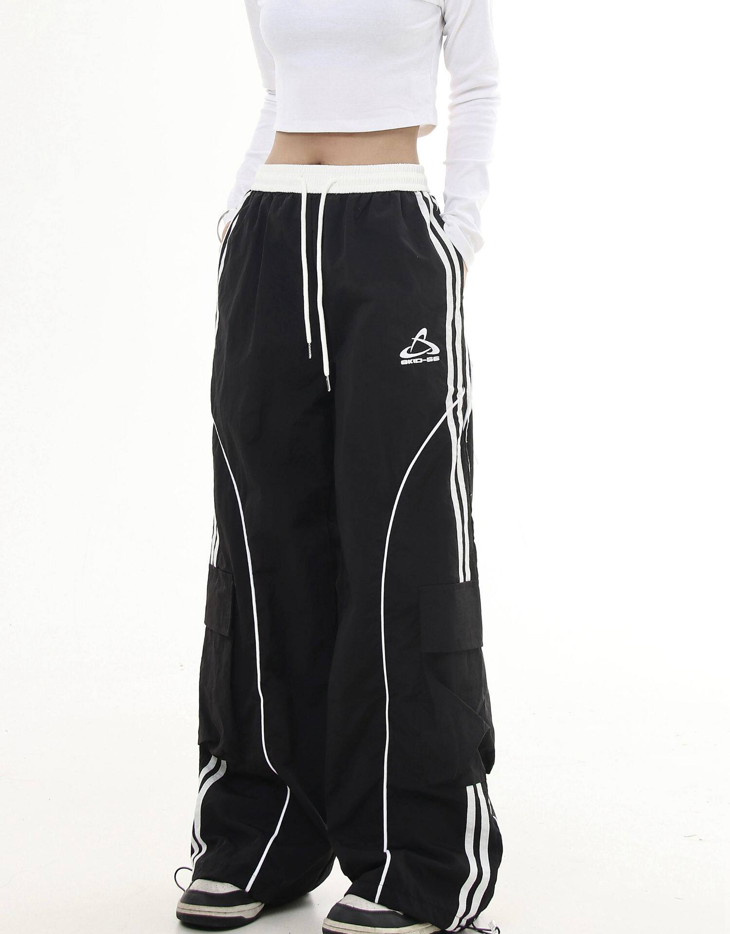 Черные списки американские ретро -полосатые полосатые строчки контрастные повседневные спортивные штаны Мужчины и женщины Хипхоп -стрит -танцы