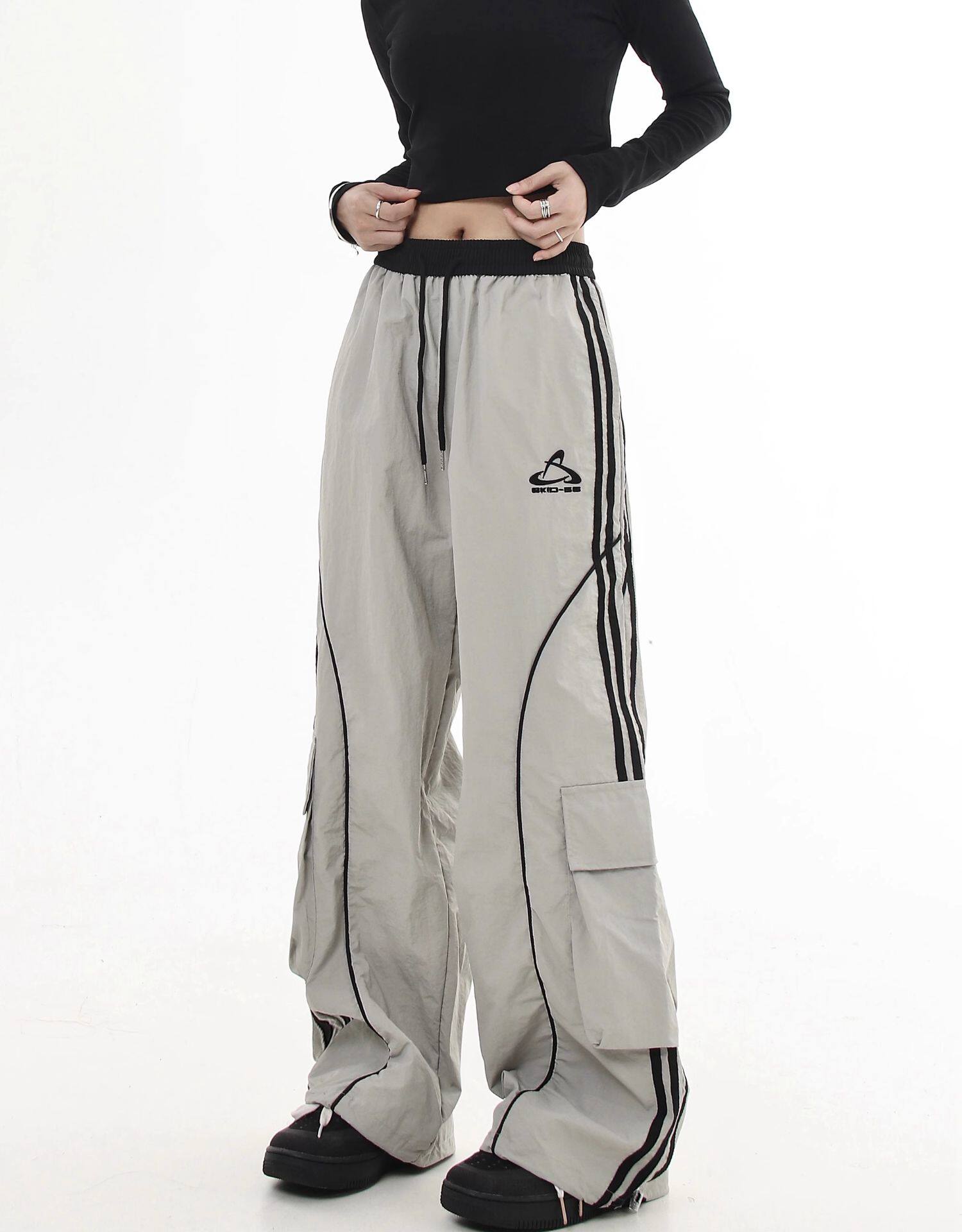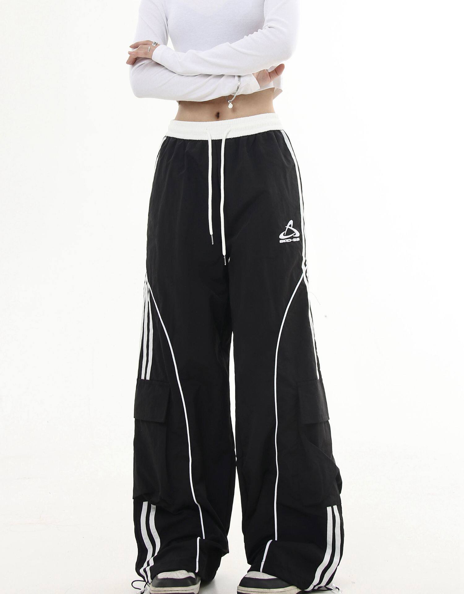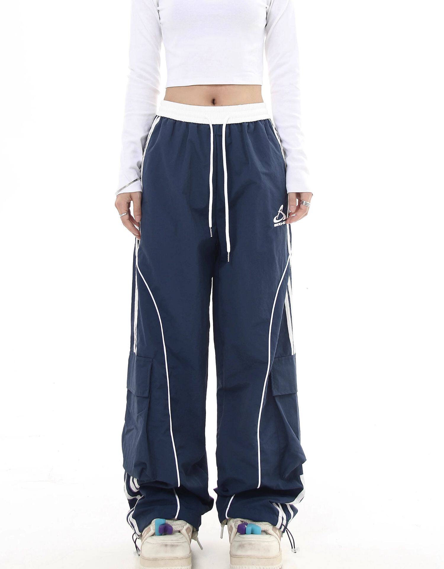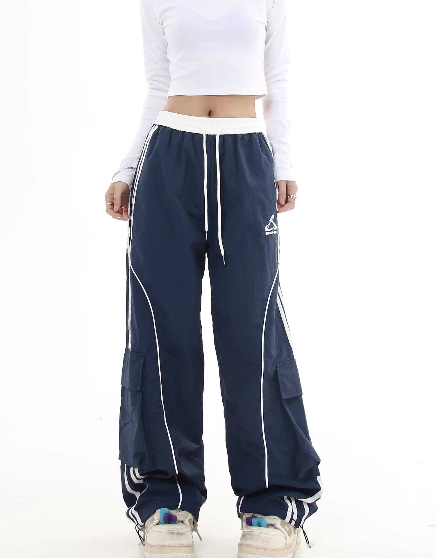 Черные списки американские ретро -полосатые полосатые строчки контрастные повседневные спортивные штаны Мужчины и женщины Хипхоп -стрит -танцы