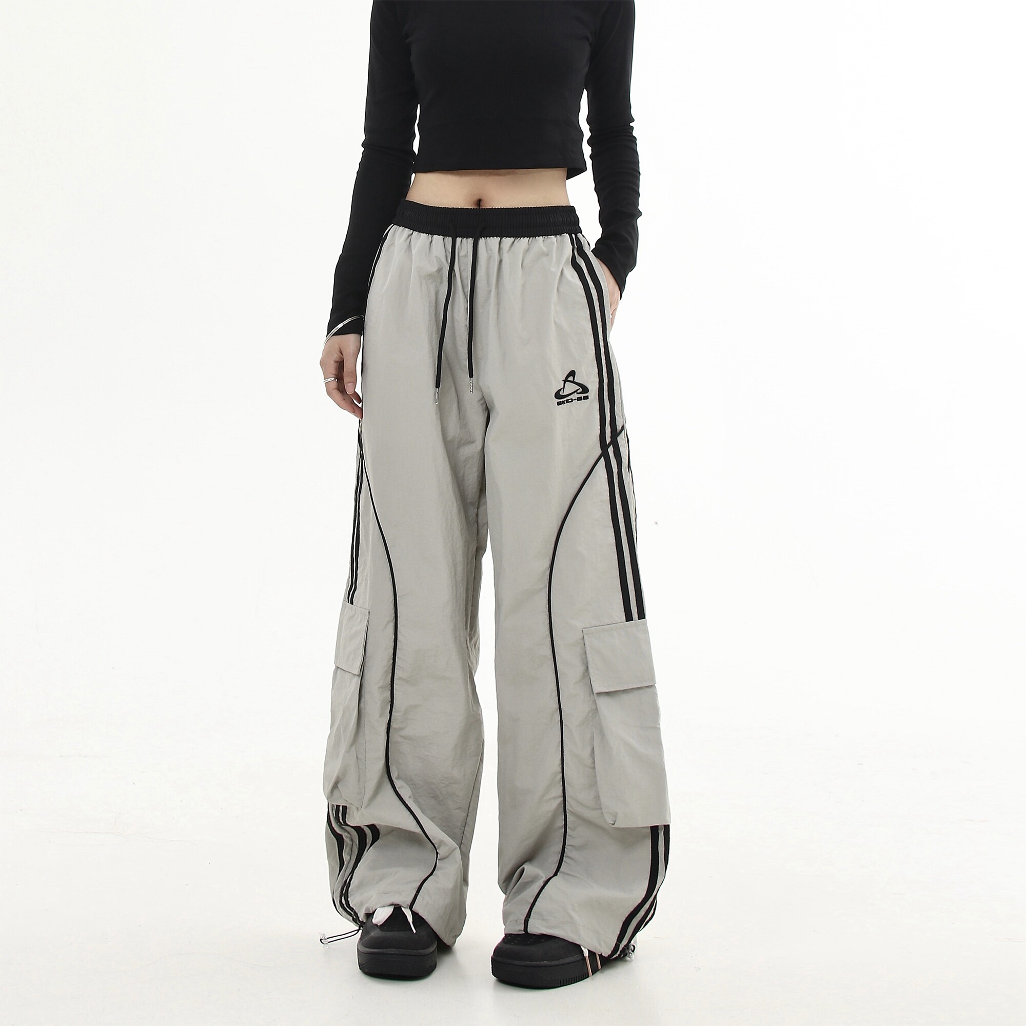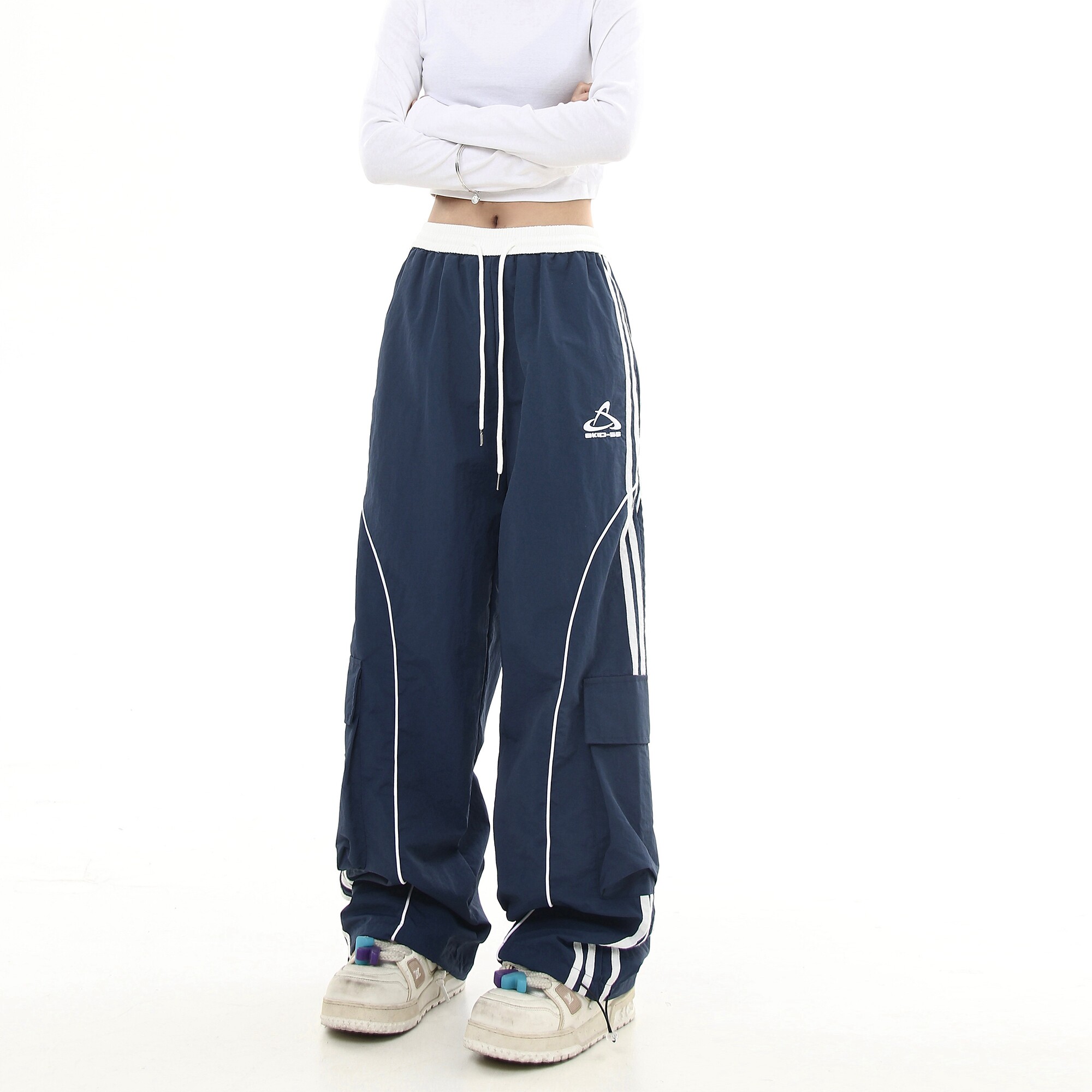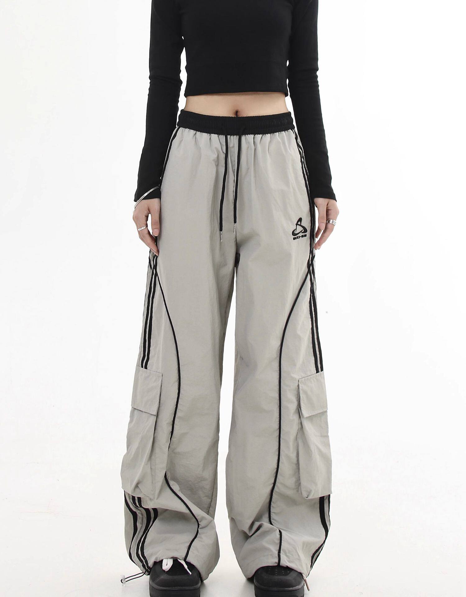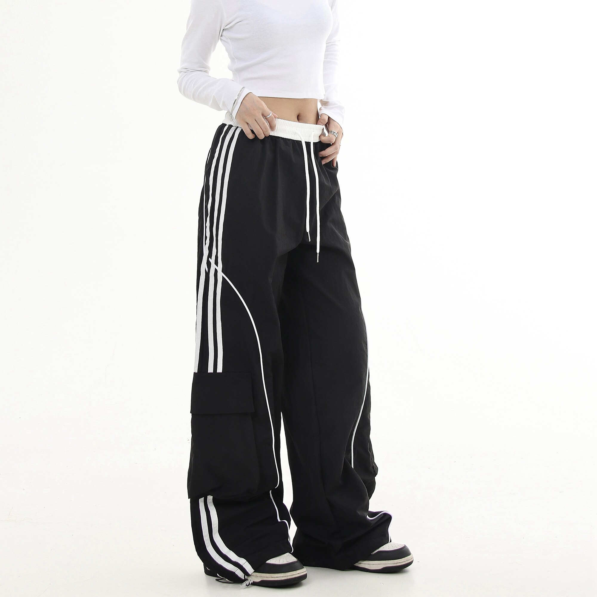 Черные списки американские ретро -полосатые полосатые строчки контрастные повседневные спортивные штаны Мужчины и женщины Хипхоп -стрит -танцы
