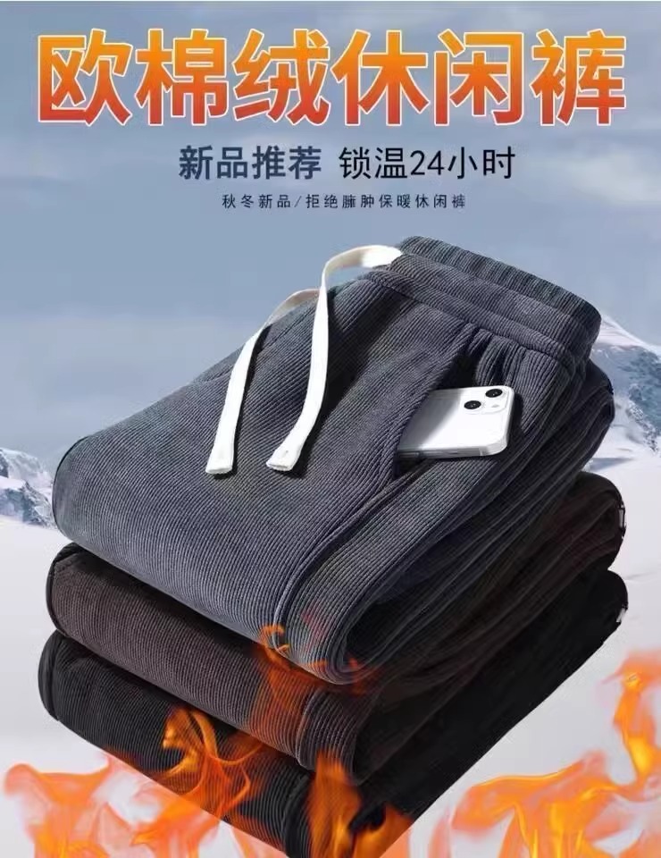 Мужские вельветовые демисезонные штаны для отдыха, утепленные универсальные джинсы с начесом, свободный крой, большой размер