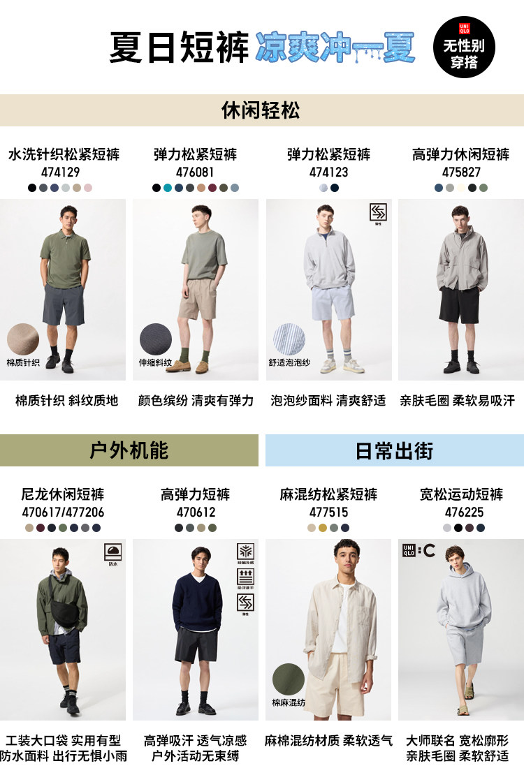 Мужские и женские льняные эластичные шорты Uniqlo, повседневные брюки средней длины из хлопка и льна/жилые брюки/можно носить на улице 477515